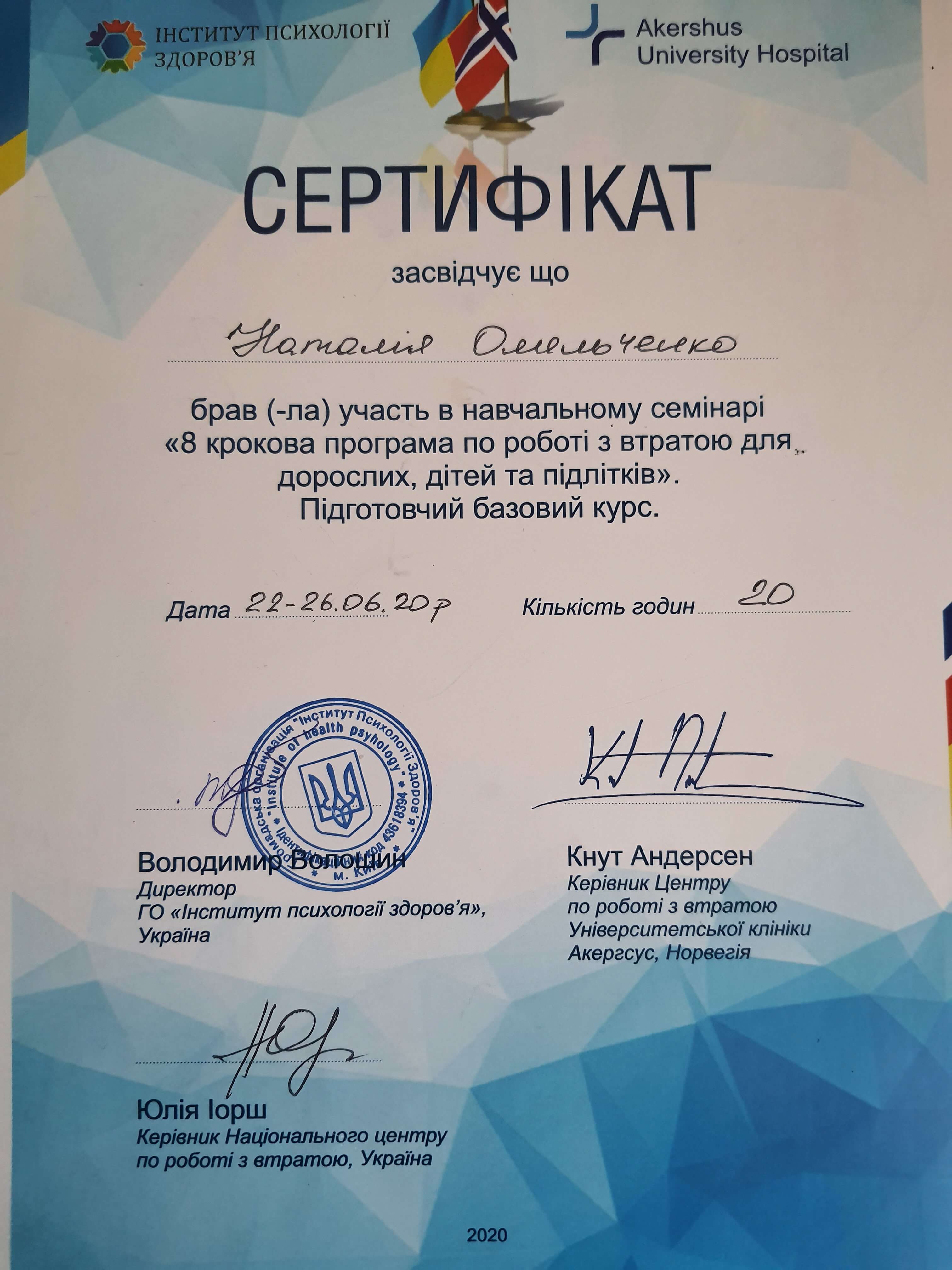 2020- "8 ступенчатая программа по работе с потерей для взрослых детей и подростков" - 60 часов