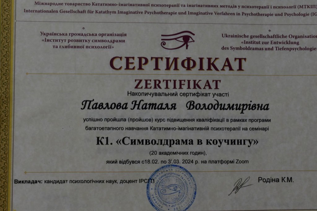 С 2019 г. по сегодняшний день учусь в "Институт развития символдрамы и глубинной психологии".