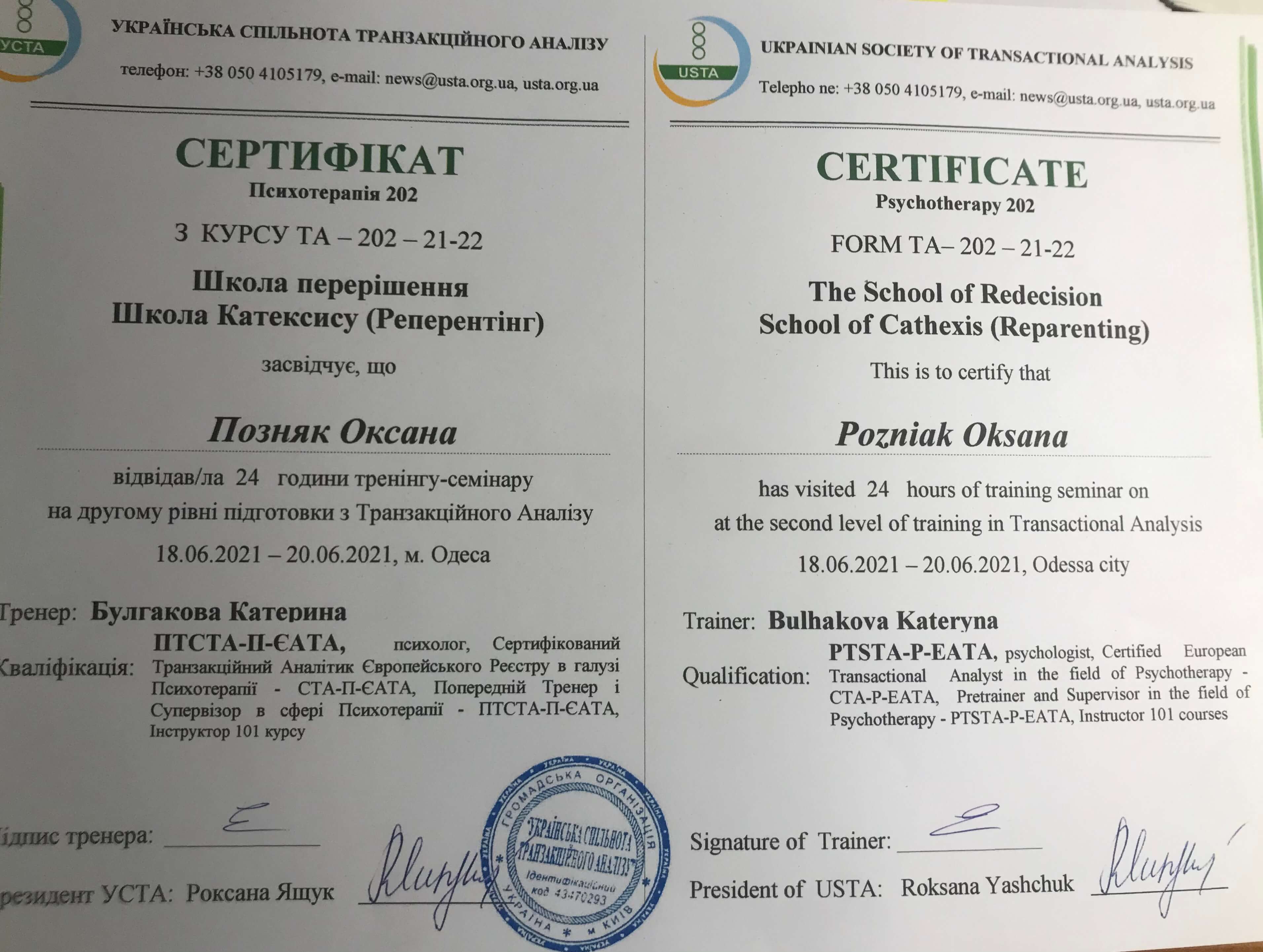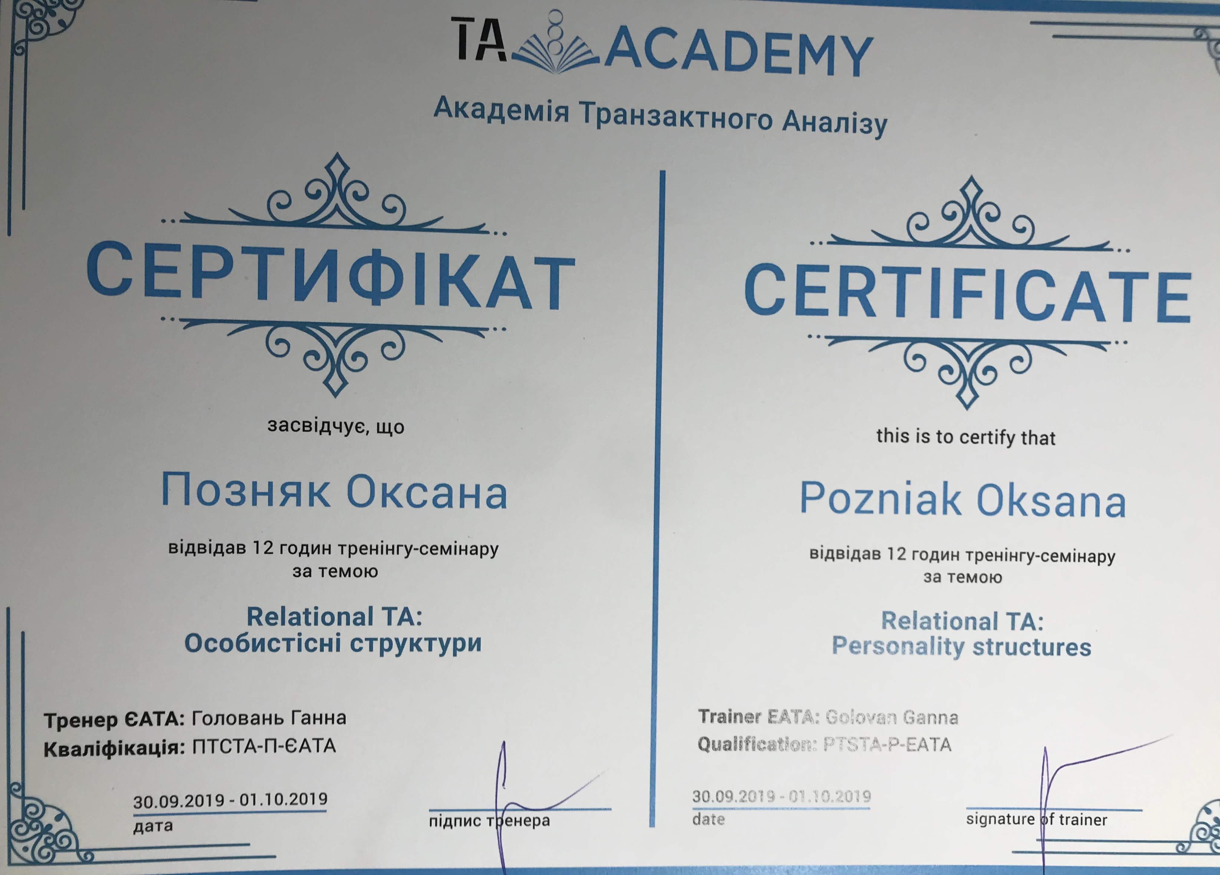 2019 г. Украiнська Спiльнота Транзакцiйного Аналiзу