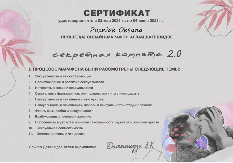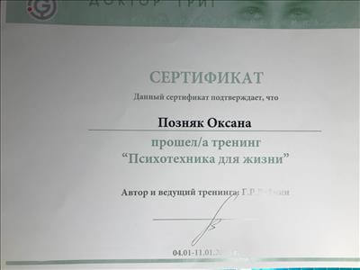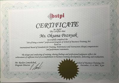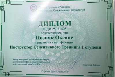 2014 г. Школа рациональной психотехники. Инструктор сенситивного тренинга.