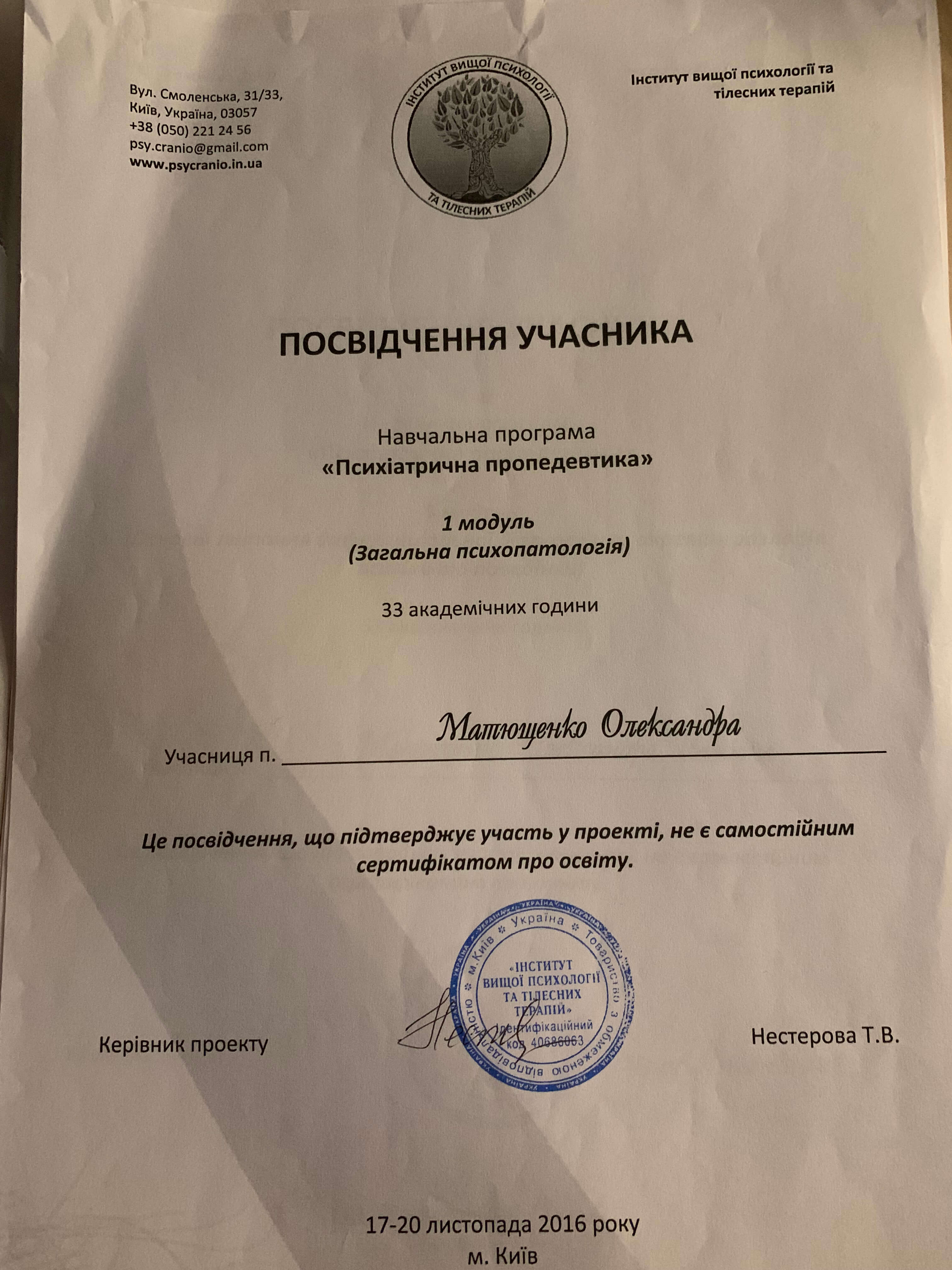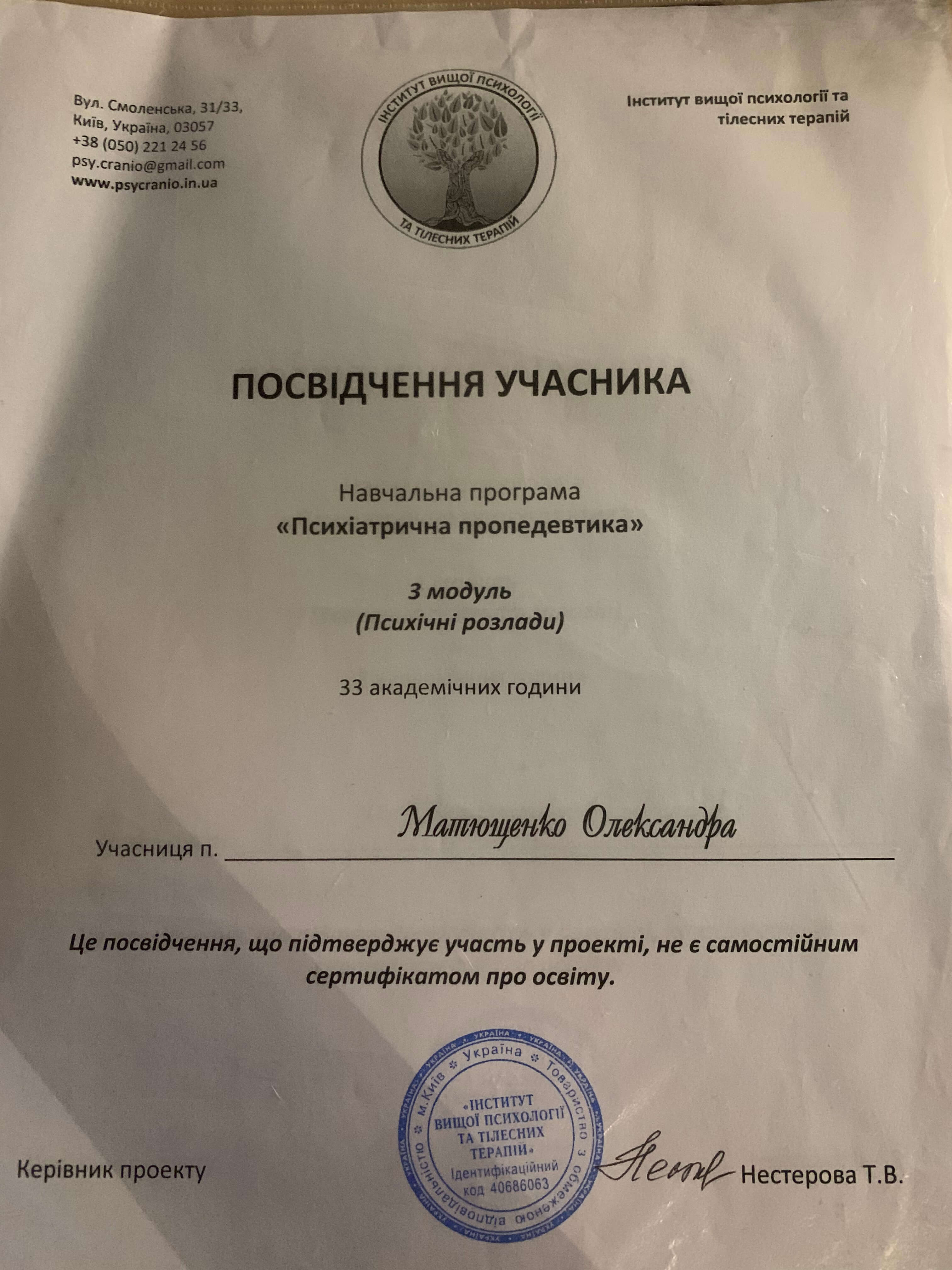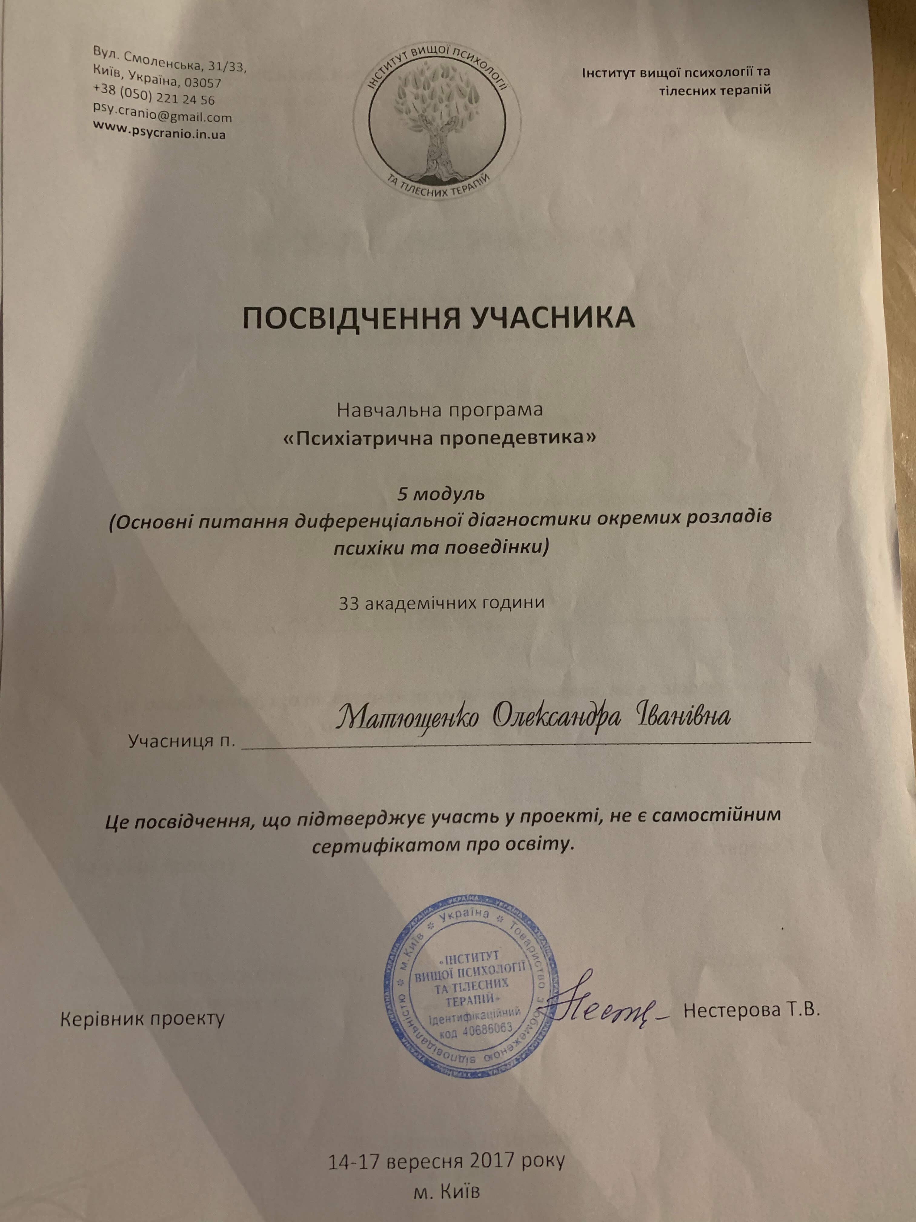 Кроме работы в основном методе, постоянно получаю дополнительное обучение, необходимое для развития терапевта.