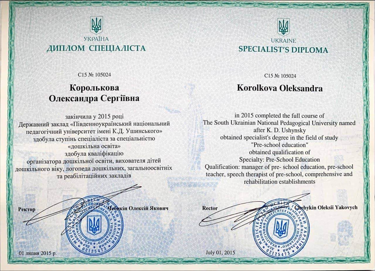 🌿Логопед – Специалист, Южноукраинский национальный педагогический университет им. К.Д. Ушинского