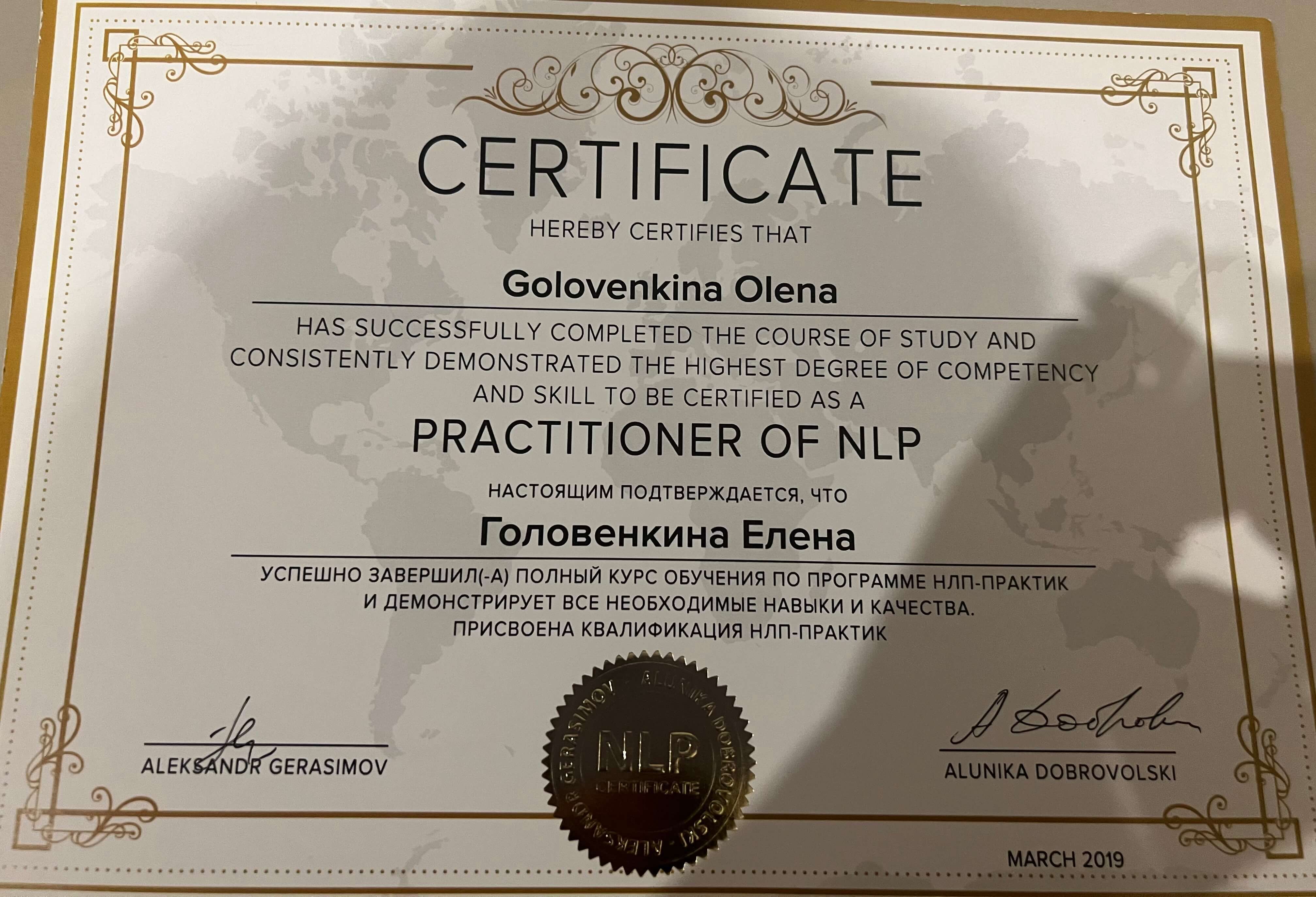 Сертификаты: