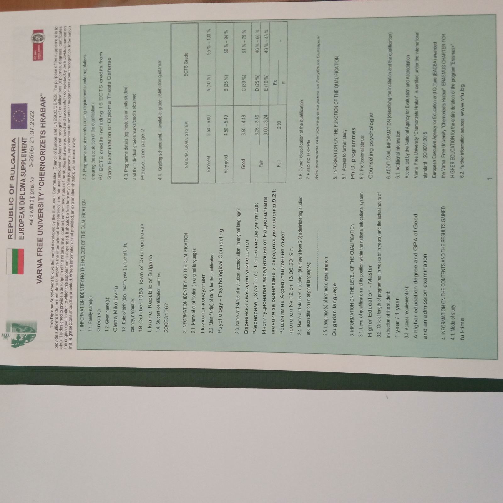 европейский диплом Varna Free University