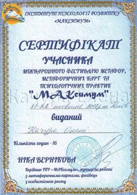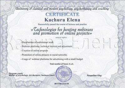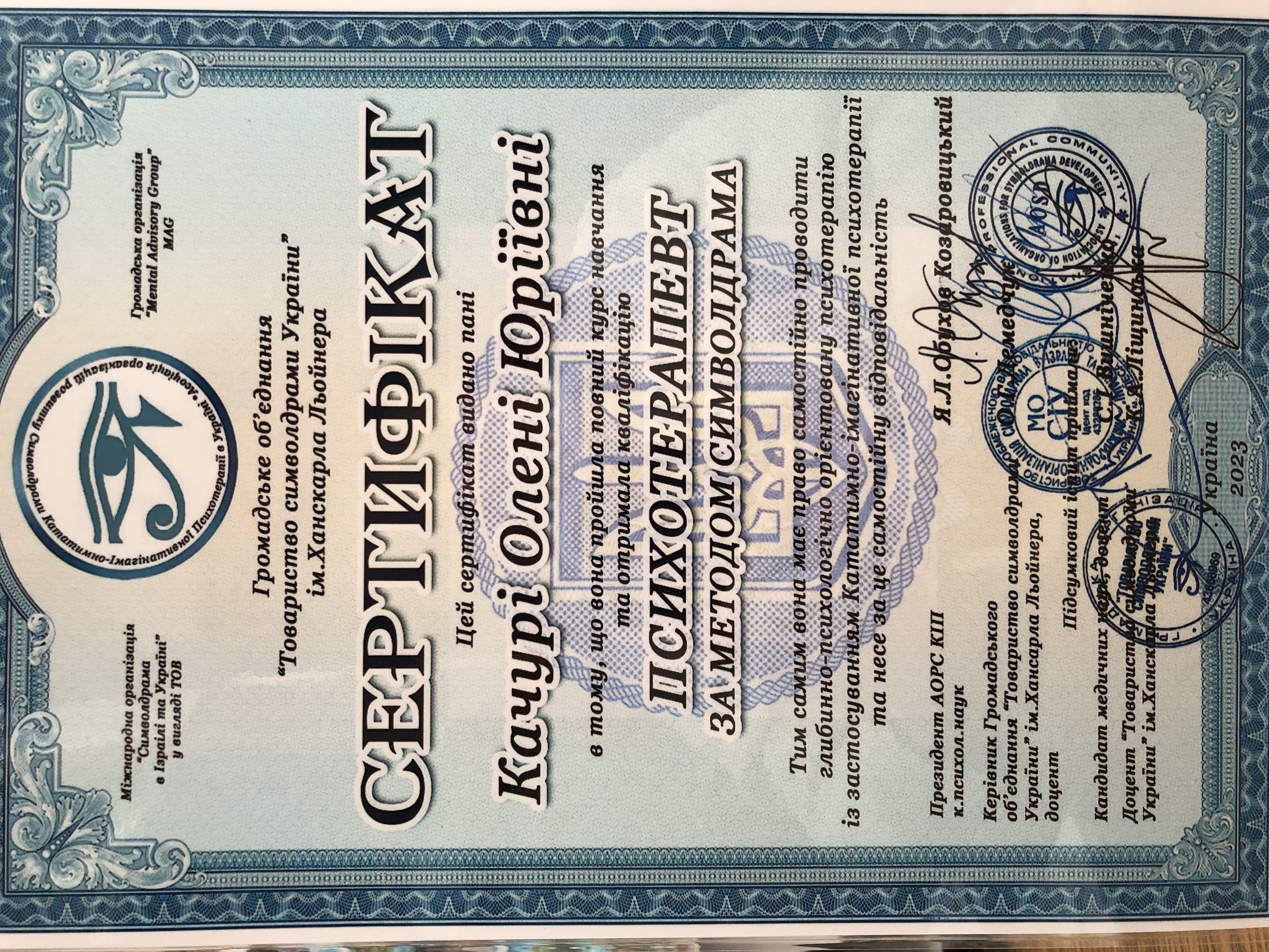 Все время совершенствую свои навыки. Ежемесячно прохожу обучающие семинары в методе Символдрама. Посещаю групповую терапию, супервизии, онлайн конференции в таких направлениях, как Арт-терапия и метафорические ассоциативные карты.