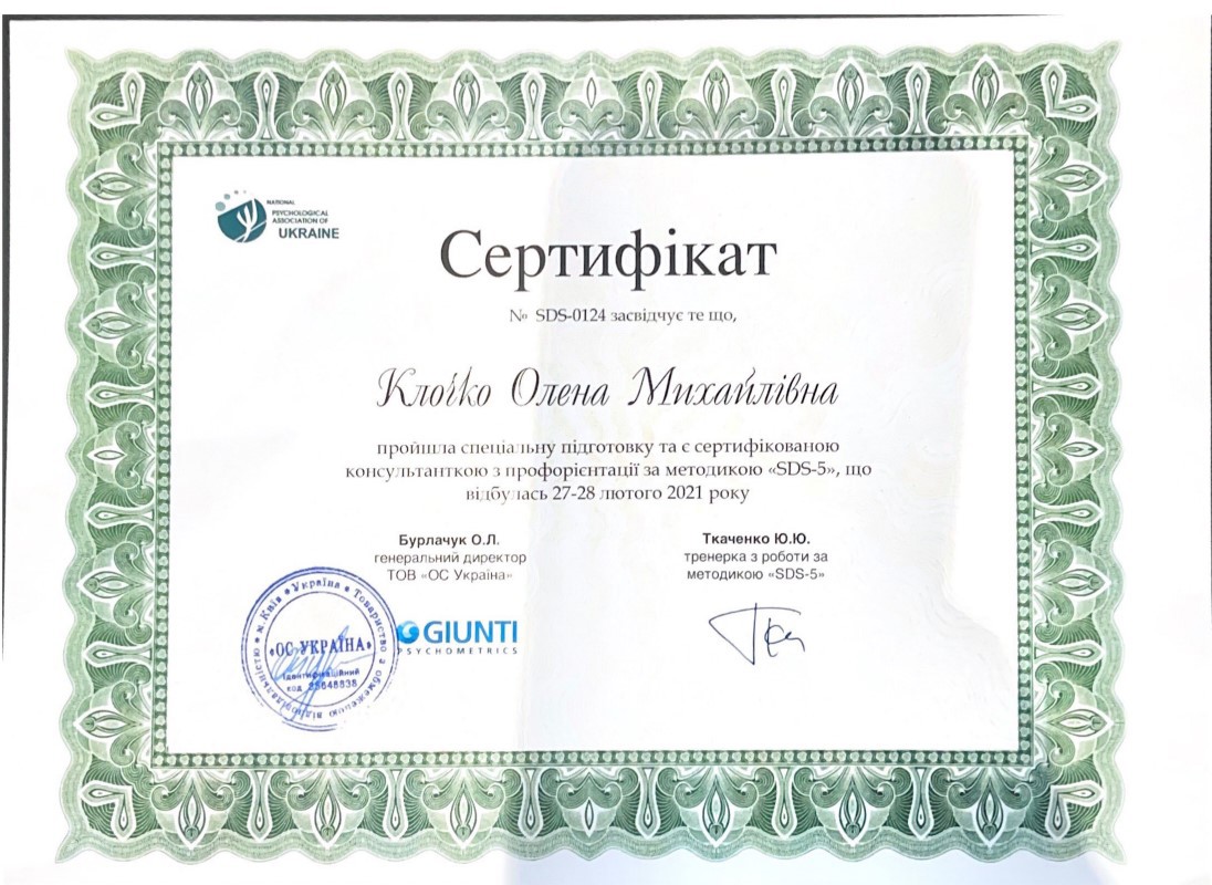 Отдельно происходила обучение на детской психологии, военном консультировании, чтобы иметь возможность поддерживать в наше сложное время в разных темах. Также есть сертификаты по профориентации взрослых и подростков.