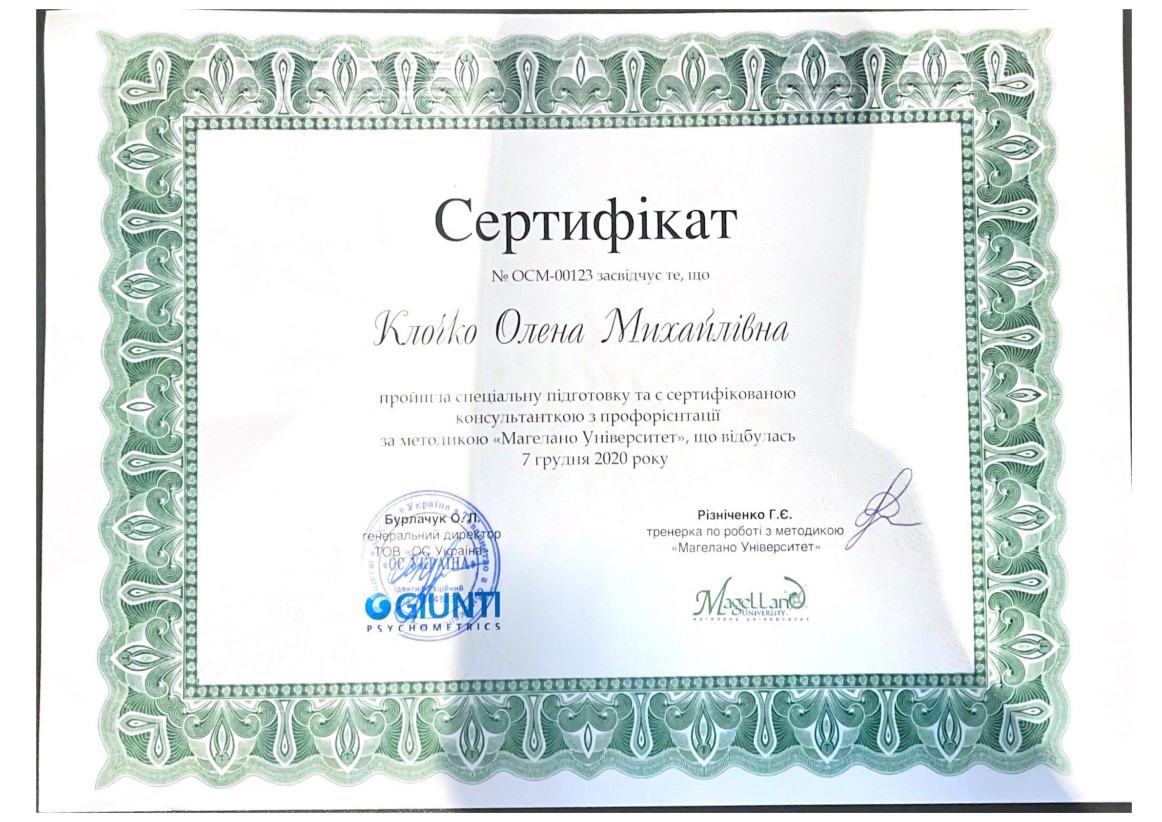 Отдельно проходила обучение на детской психологии, военном консультировании, чтобы иметь возможность поддерживать в наше сложное время в разных темах. Также есть сертификаты по профориентации взрослых и подростков.