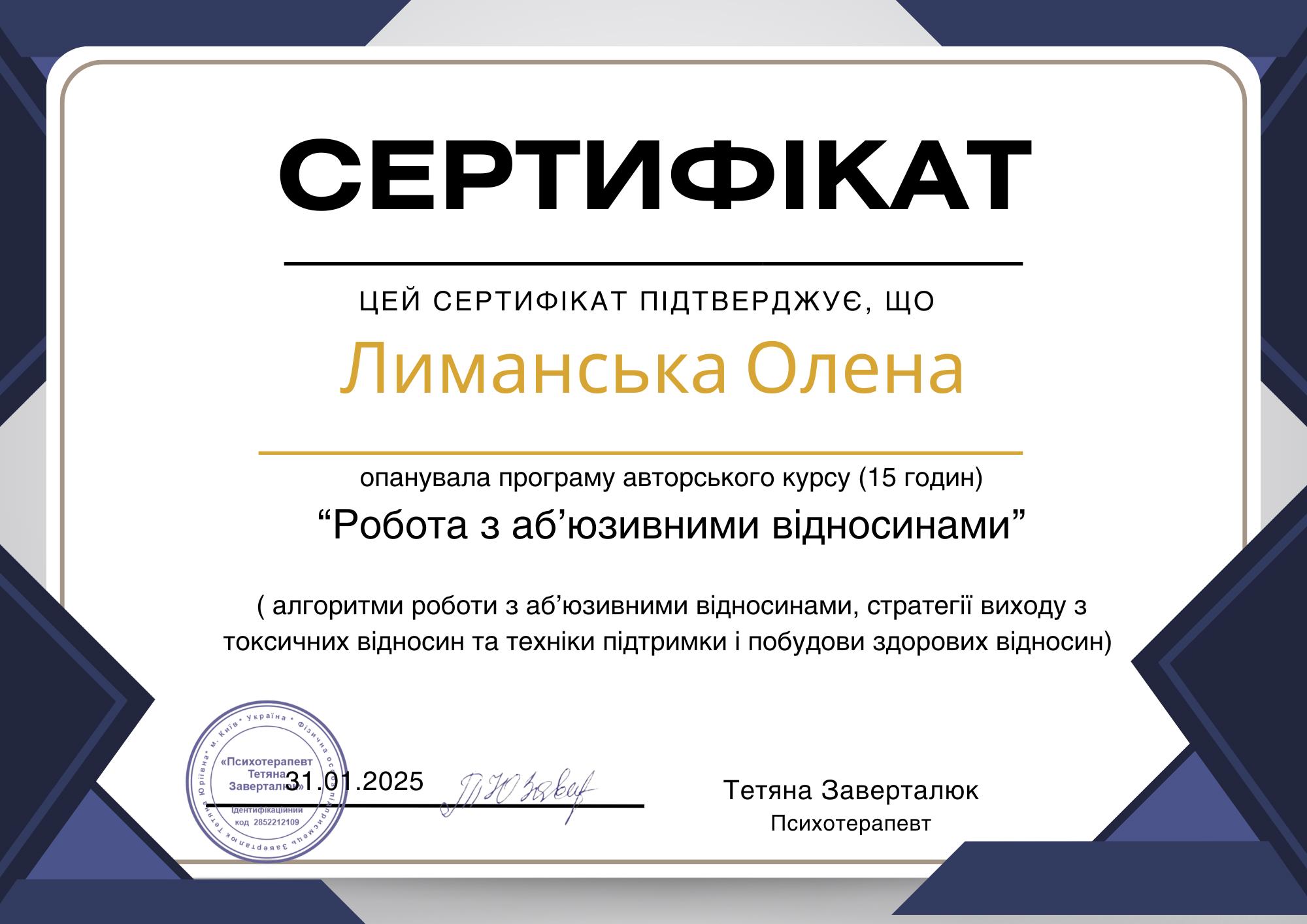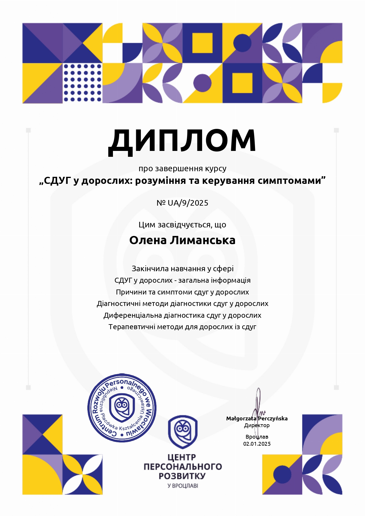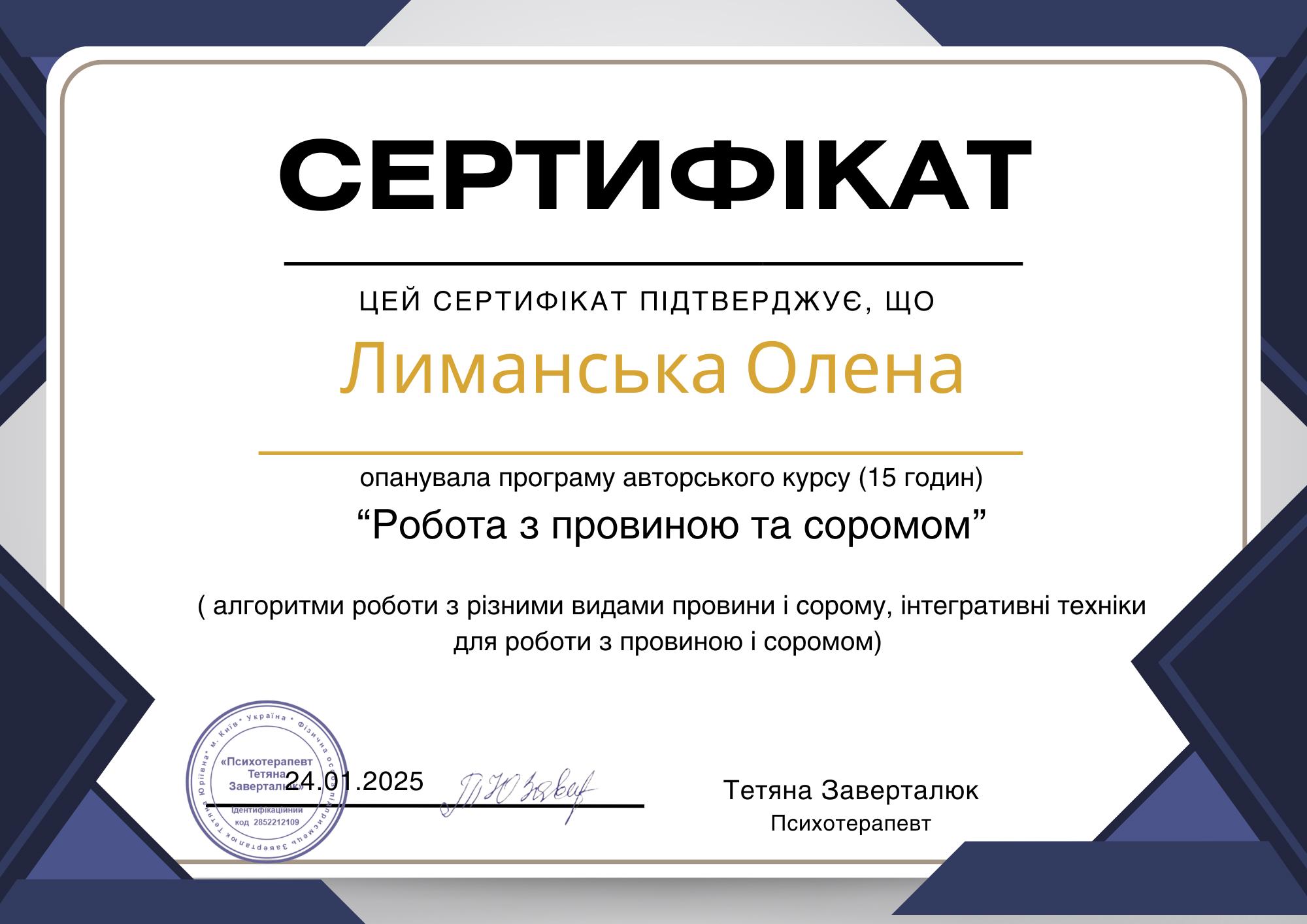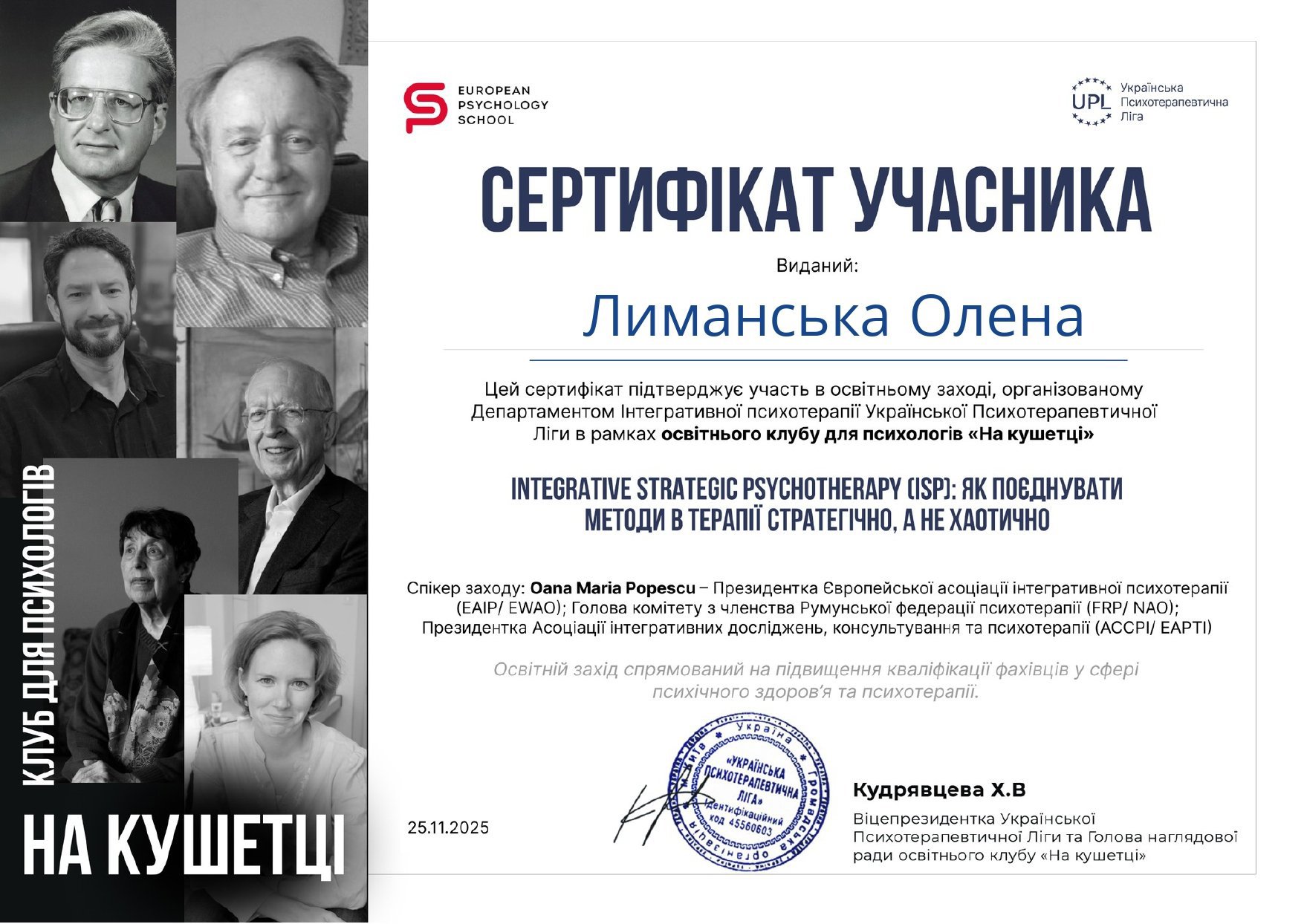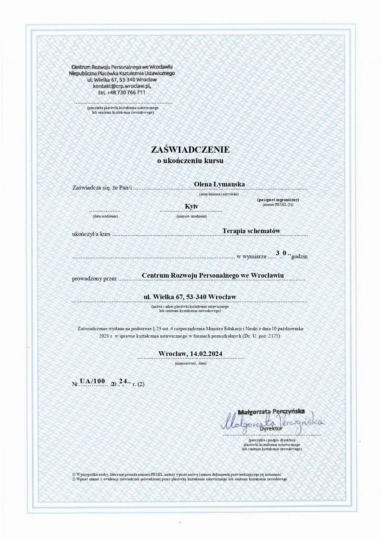 Сертификаты -Когнитивно-поведенческая терапия (КПТ), Психотравматология, Схема-терапия