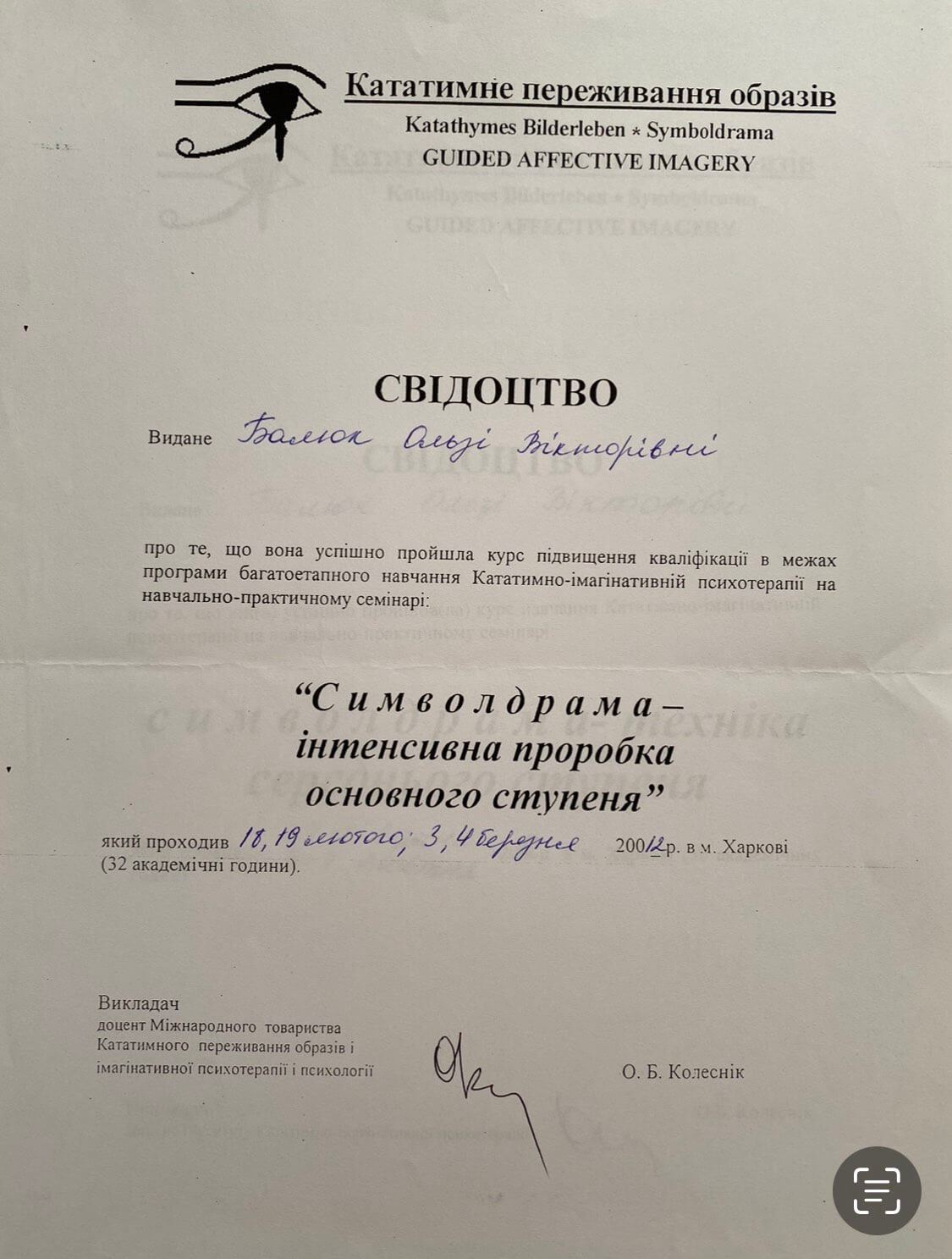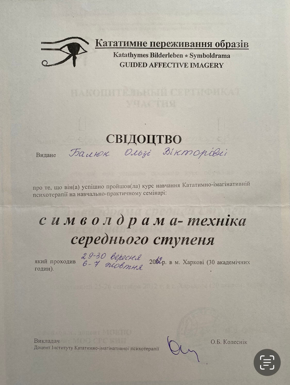 Интегративная психотерапия обучаюсь на 1-ой ступени.