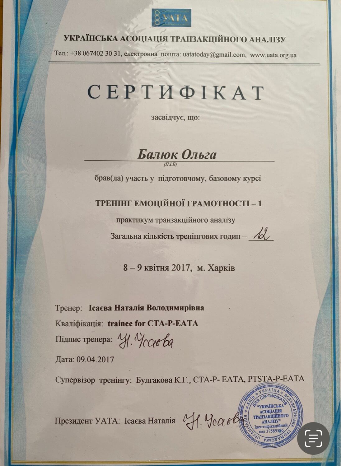 Тренінг емоційної грамотності-1, практикум транзактного аналізу, 2017