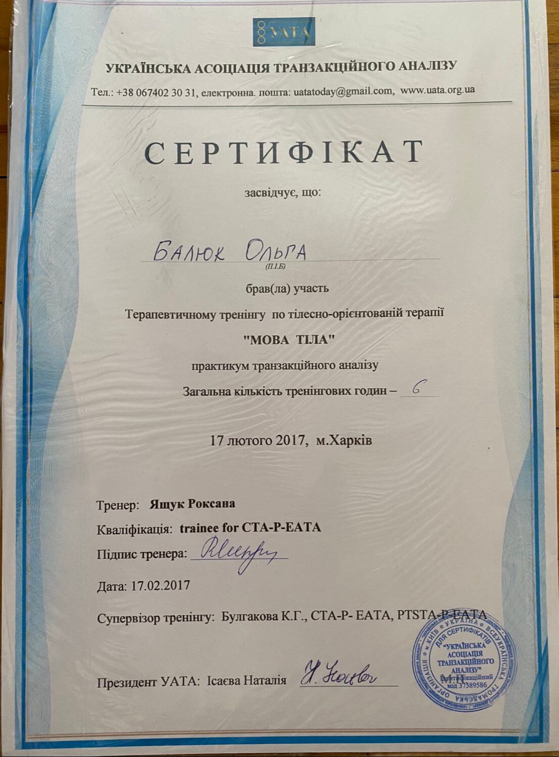 Терапевтичний тренінг по тілесно-орієнтованої «Мова тіла», практикум транзактного аналізу, 2017