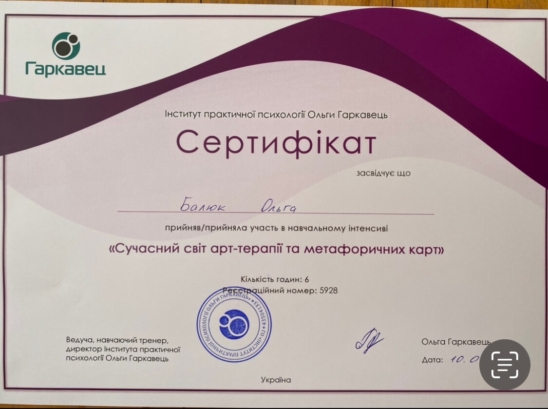 Навчальний інтенсив «Сучасний світ арт-терапіі та метафоричних карт», 2021
