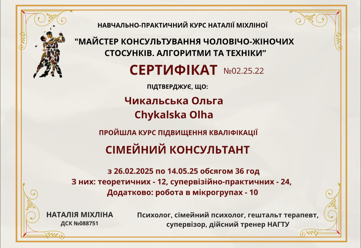2 степени Национальной Ассоциации Гештальт Терапевтов Украины