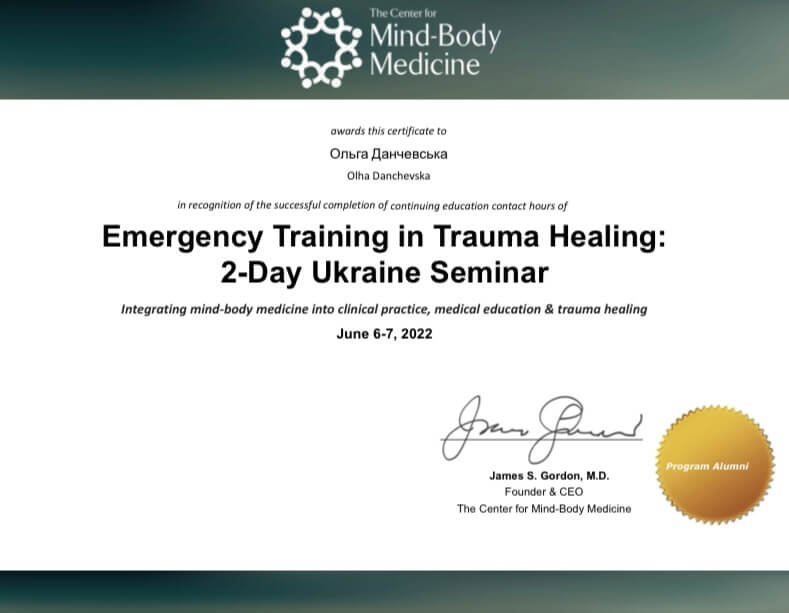 Постійно підвищую свою кваліфікацію та вивчаю нові методи для роботи з вами. Зараз активно вивчаю все, що пов'язане з нейрофізіологією, реакціями тіла в психології та вибираю для себе курси саме з цієї галузі.