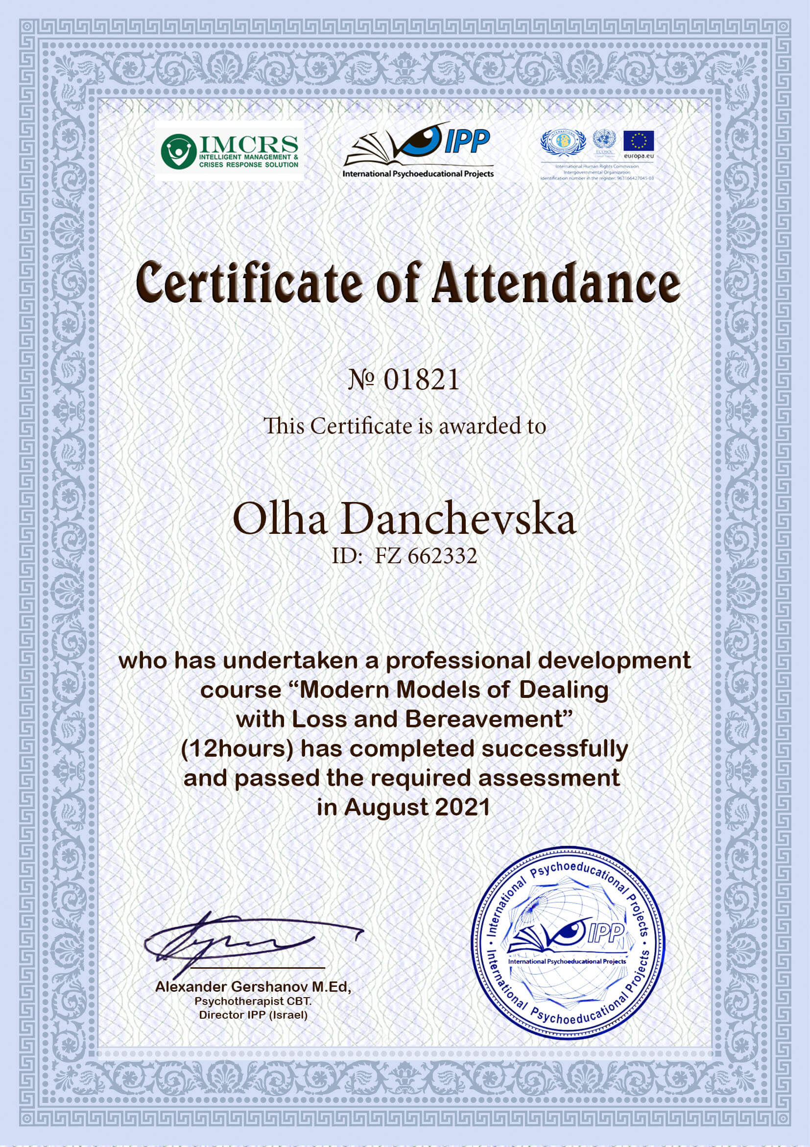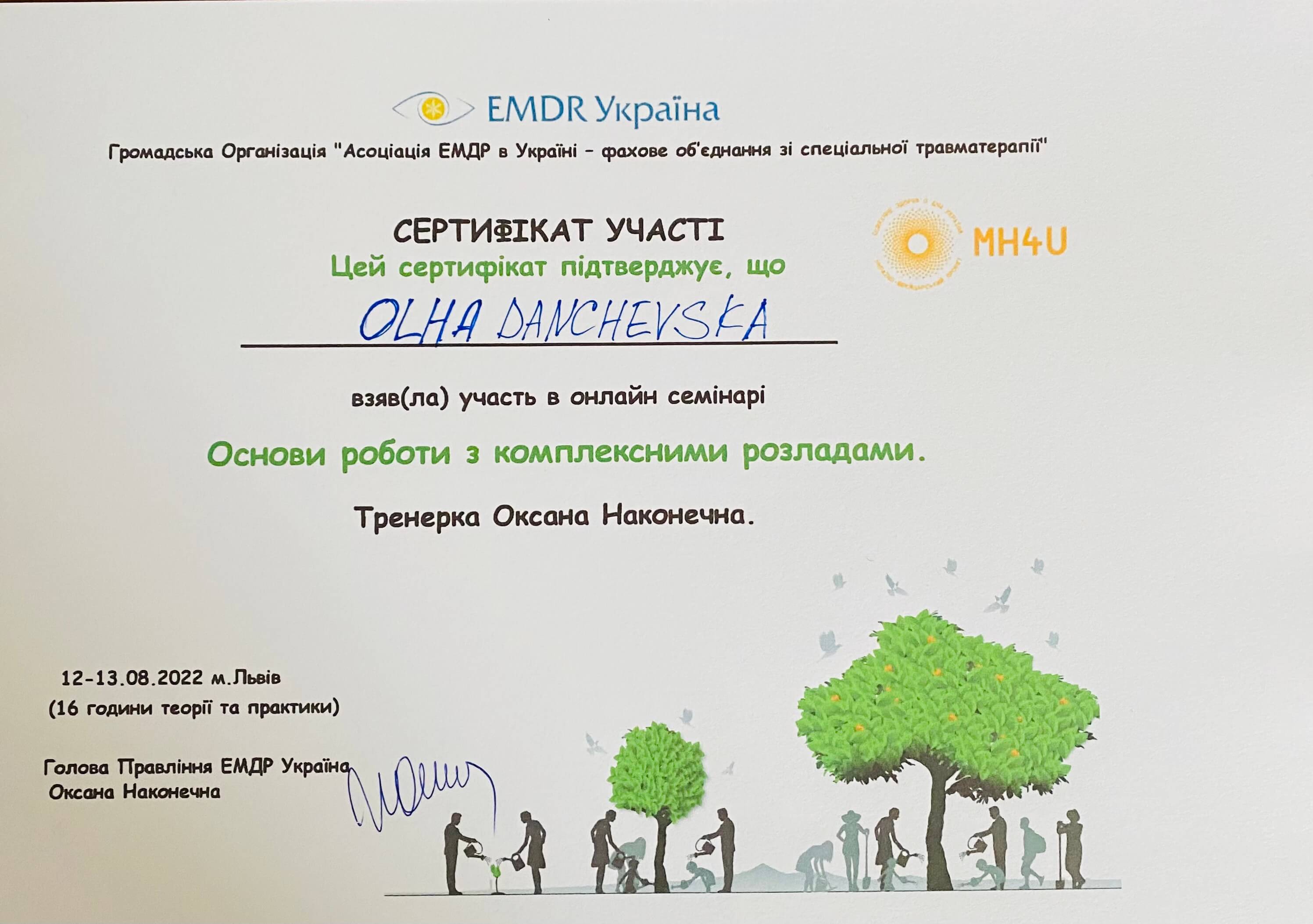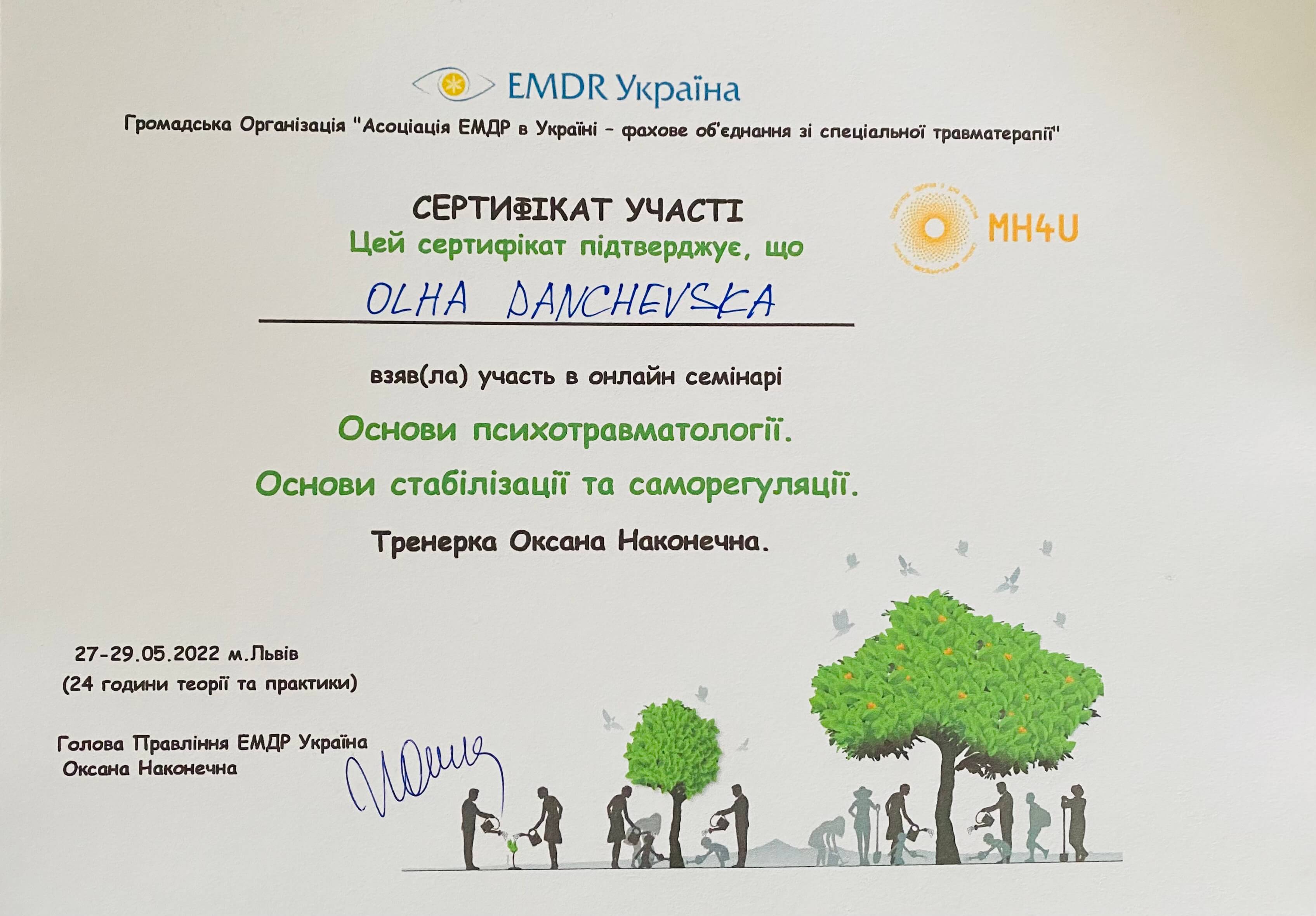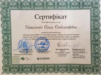 Сертифікований експерт з методик - MMPI-2 та Org-EIQ.