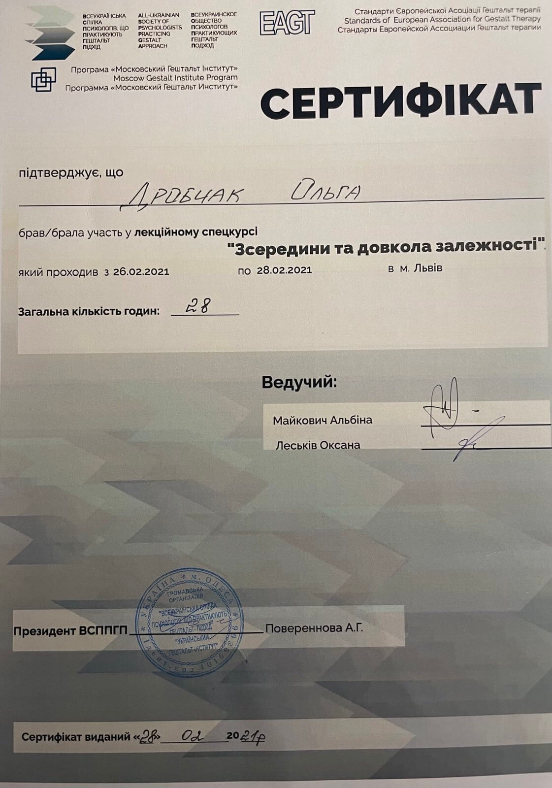 ГПУ им. Ивана Франко (магитратура) Гештальт-терапия (НАГТУ);