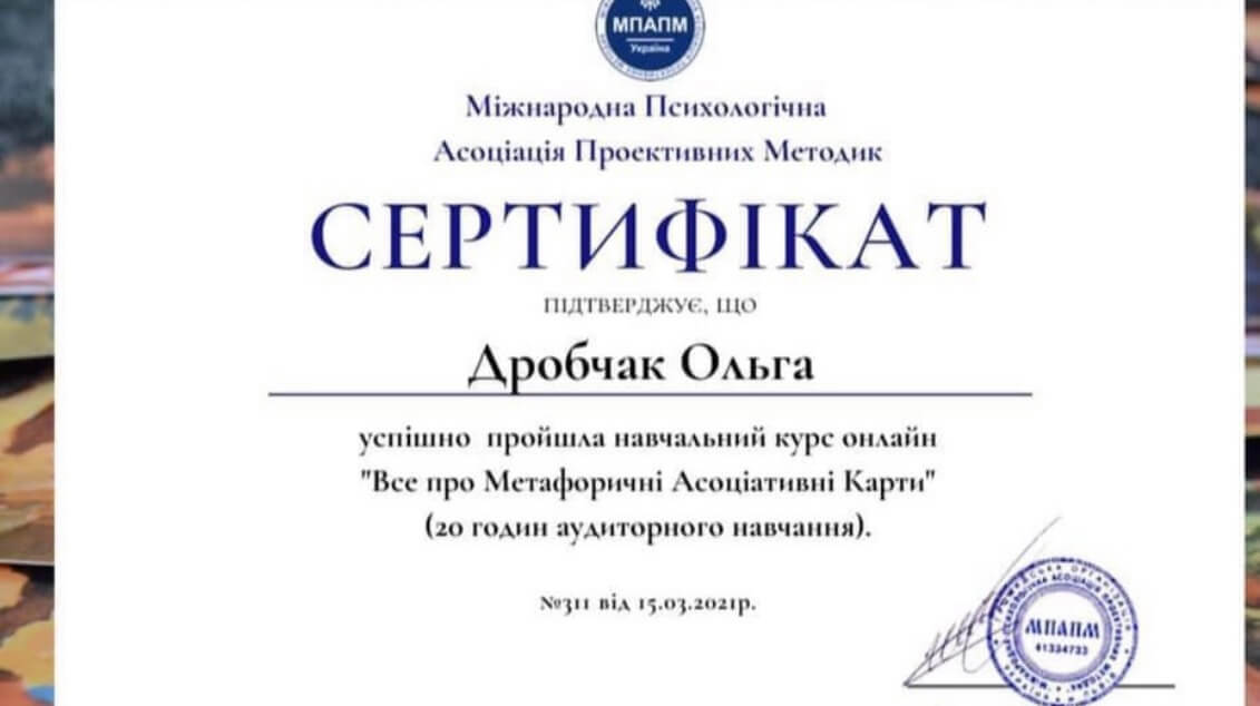 Я работаю в центре восстановительного лечения "Модричи" психологом уже третий год. (Пациенты, получившие физические травмы, инсульты, также есть военные, и веду группы для родителей, воспитывающих детей с особенностями). Также имею собственную психологическую практику. Работаю в гештальт-подходе, а также в подходе POSITUM (положительная психотерапия). В своей работе часто использую методы по арт-терапии. Использую метафорические карты, также работаю с образами.