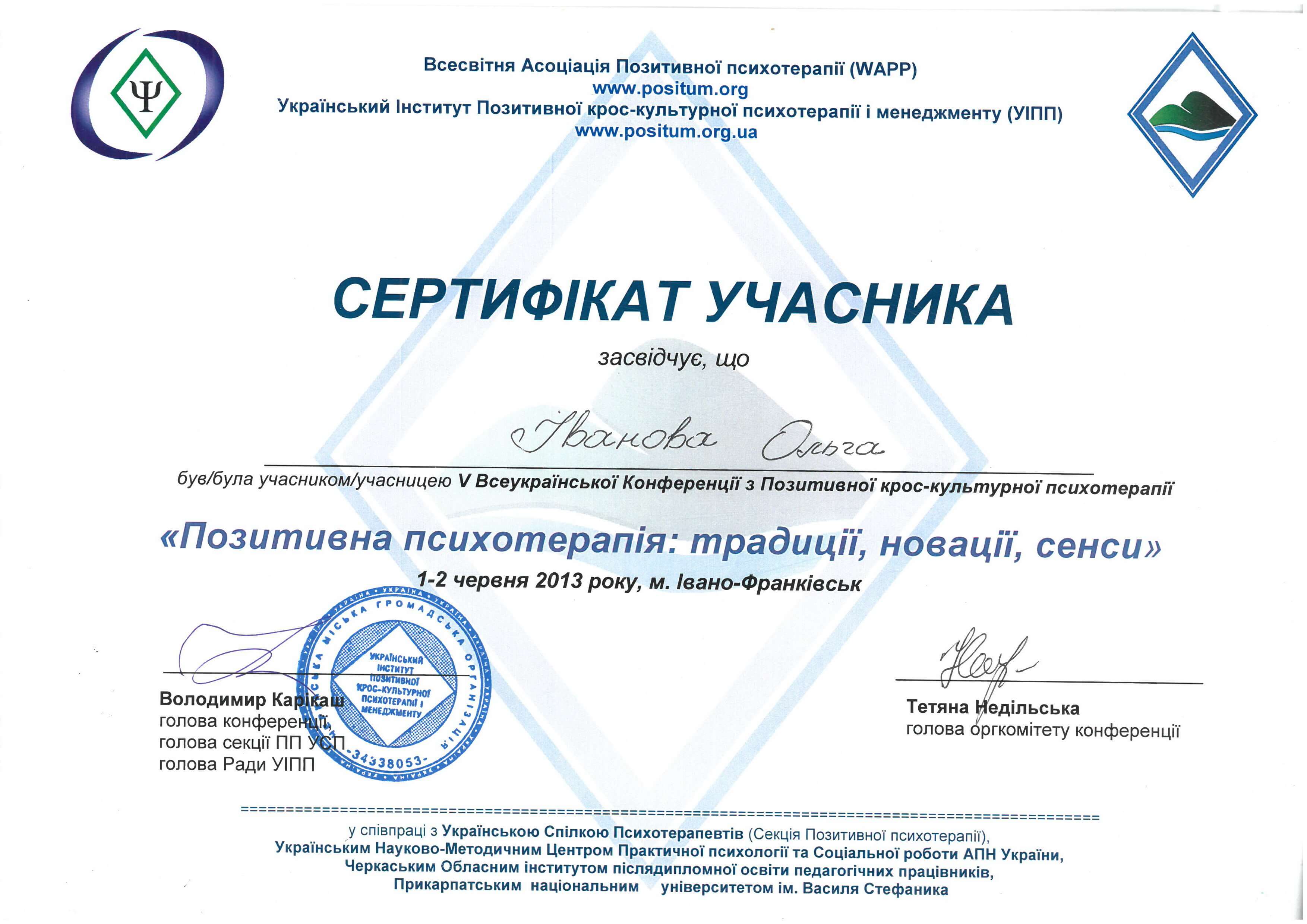 Международная Академия Позитивной и Транскультурной Психотерапии, Висбаденская Академия Психотерапии Всемирной Ассоциации Позитивной Психотерапии – 2012-2020 г.г.