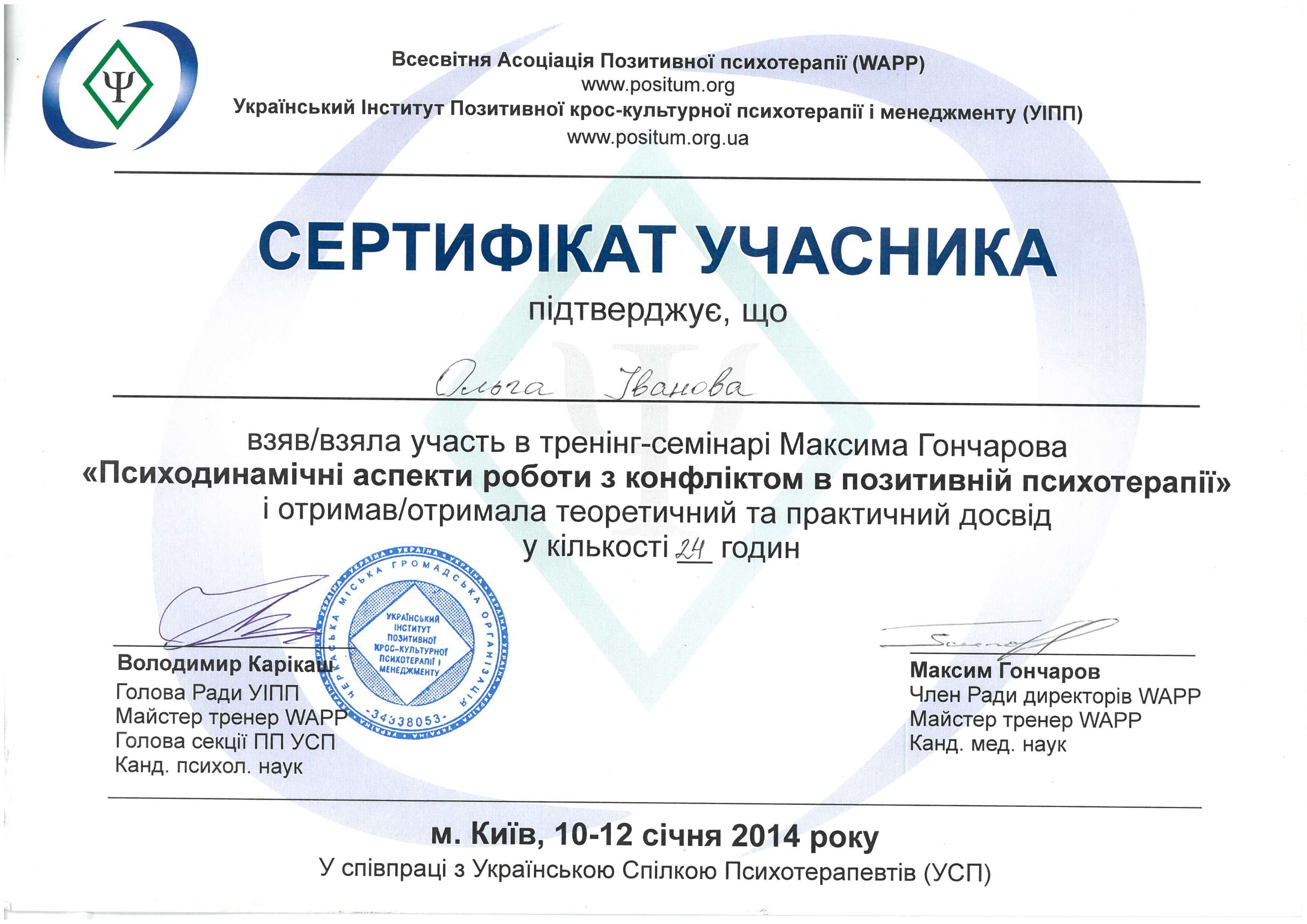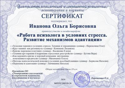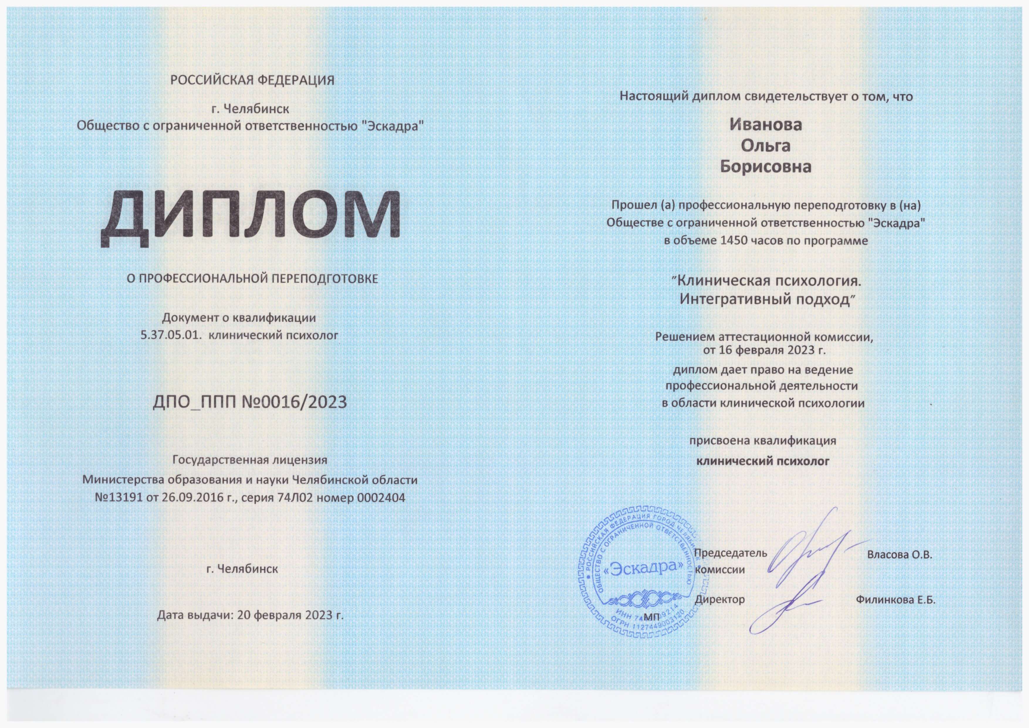 Клиническая психология. Интегративный подход. 1450 часов. Присвоена квалификация "Клинический психолог"