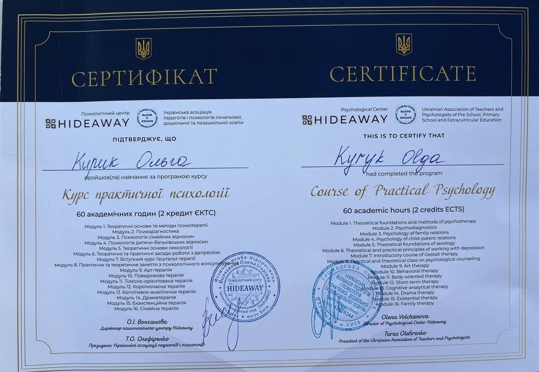 Работаю в мягком, поддерживающем стиле – без оценок, без давления, с большим уважением к вашей истории и темпу.