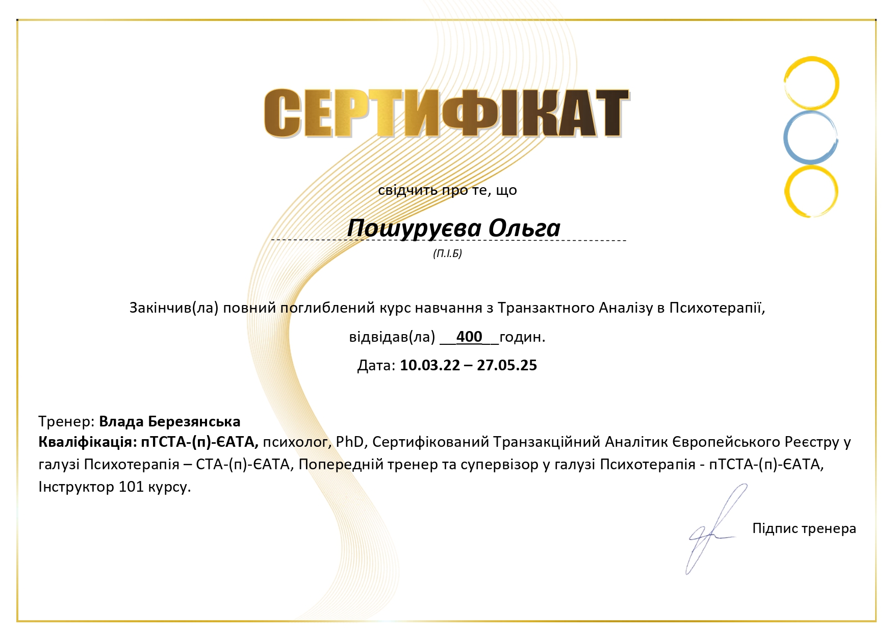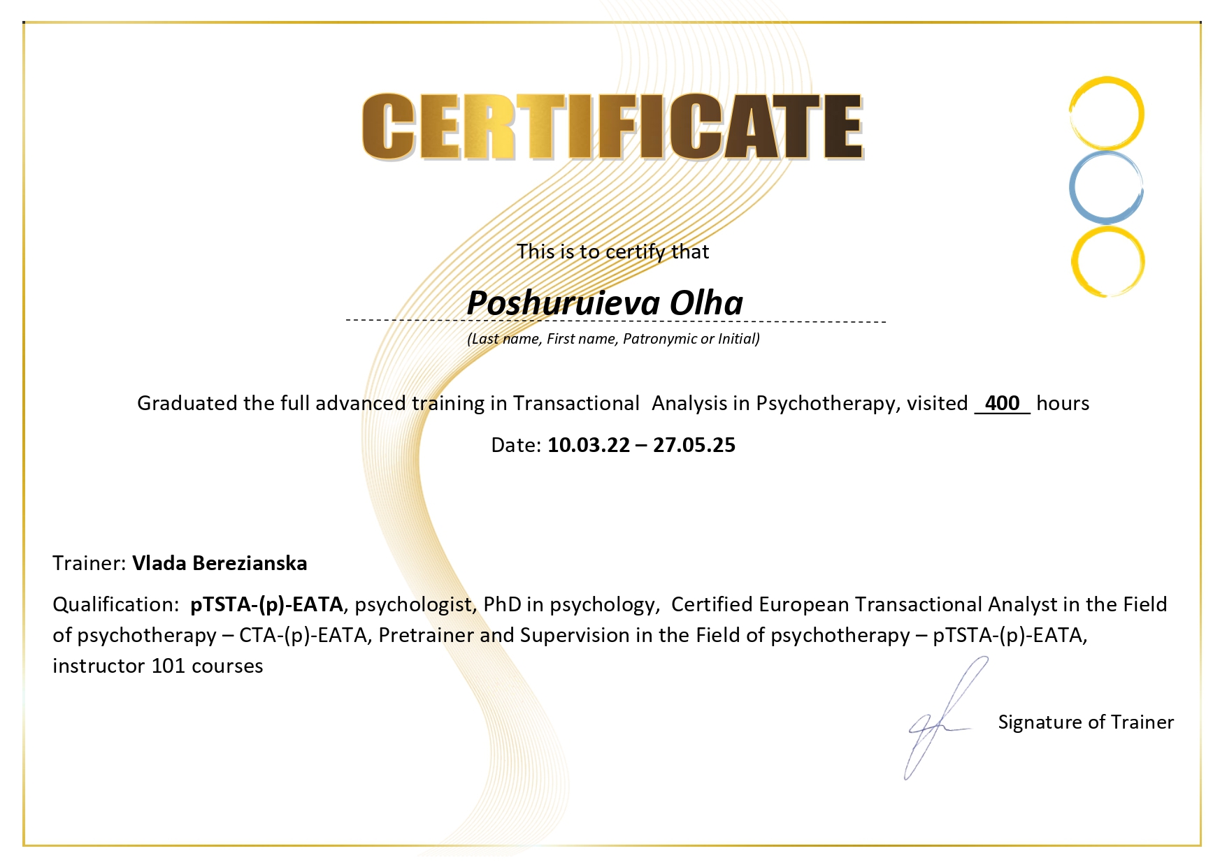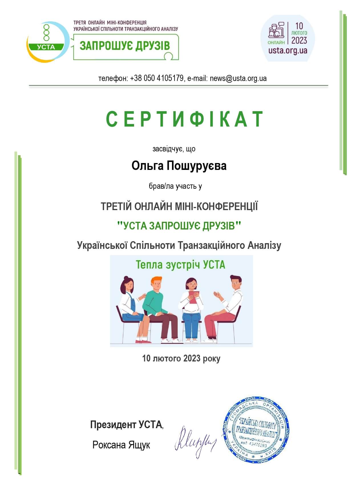 Ассоциированный член УСТА (Украинский союз Транзактного анализа)
