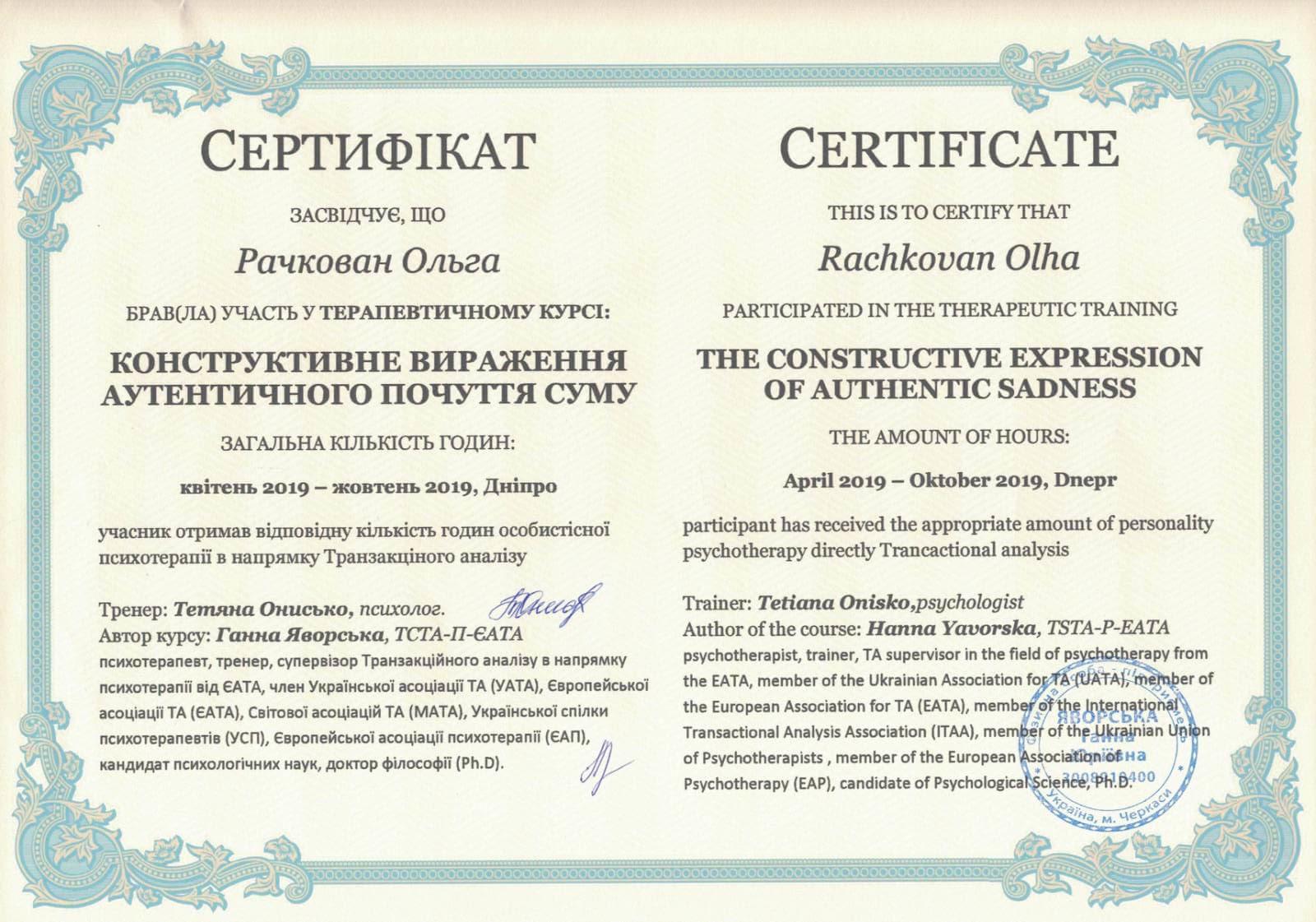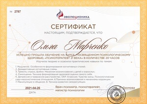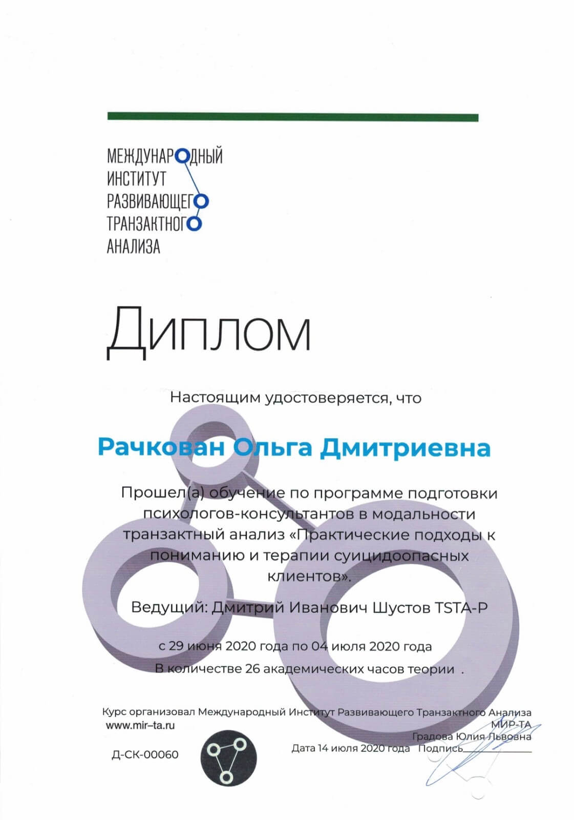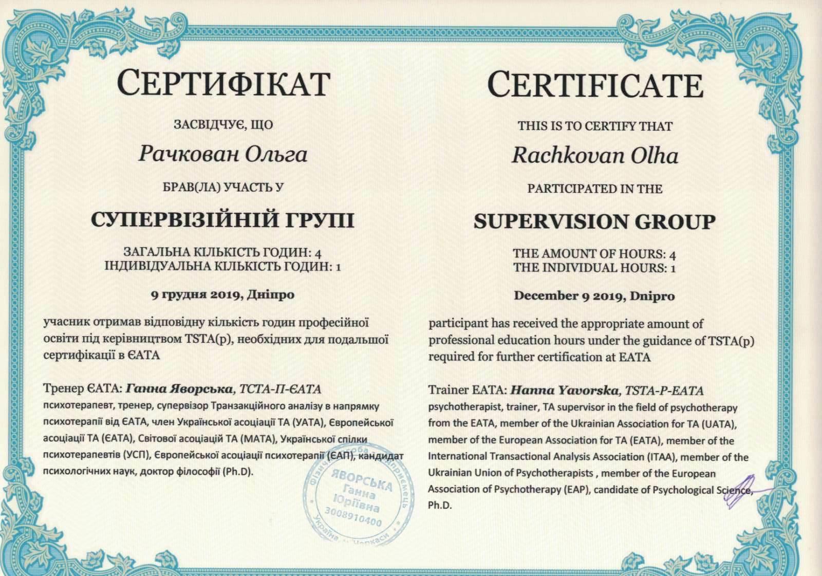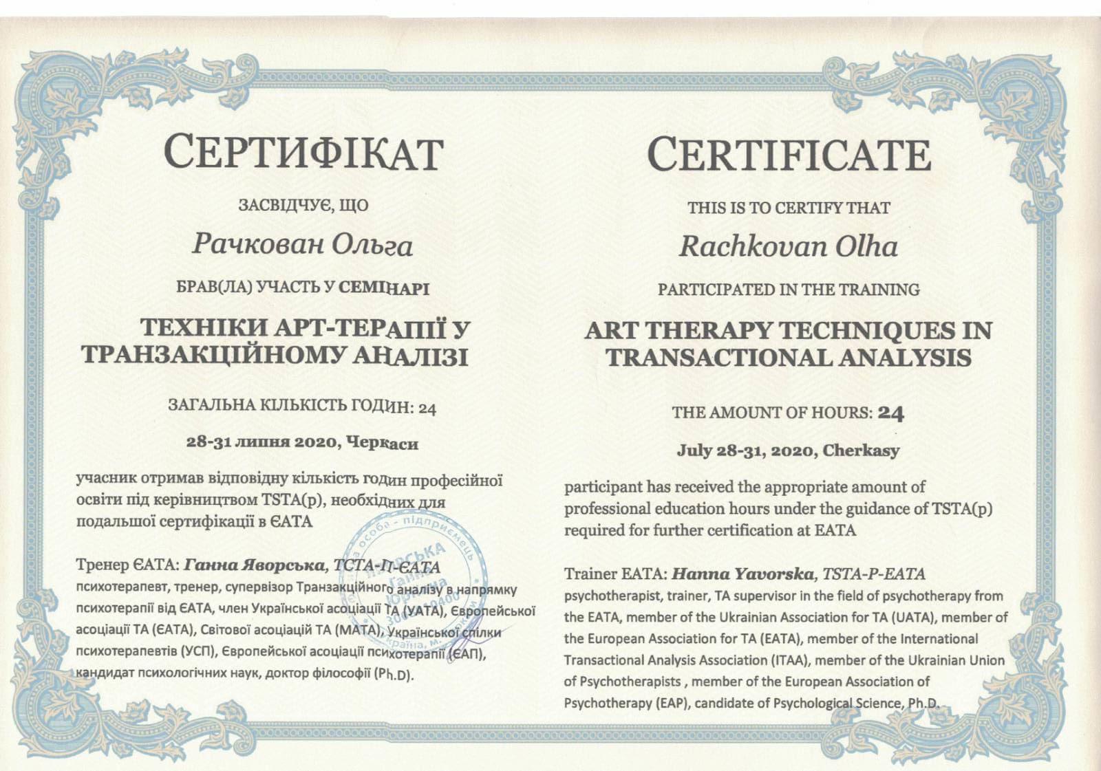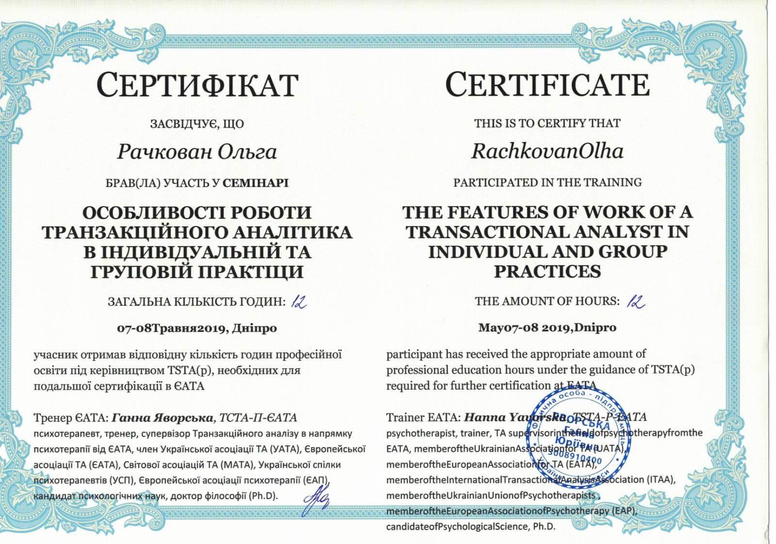 Переяслав-Хмельницкий государственный педагогический университет. (практический психолог). Украинская Ассоциация Транзактного Анализа (психотерапевт). Когнитивно-Поведенческая Терапия (психолог).