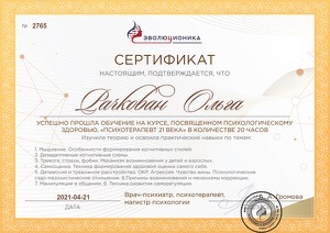 К изучению психологии был очень длинный путь. Изначально было большое желание научиться распознавать природу своих эмоций, чувств и различных процессов, которыми была насыщена моя жизнь. Таким образом это любопытство переросло в любовь к психологии и пониманию, что своими знаниями я могу помогать людям. Я счастлива в личной жизни. Я испытываю мгновения радости, когда вижу счастливые искорки в глазах своих клиентов.