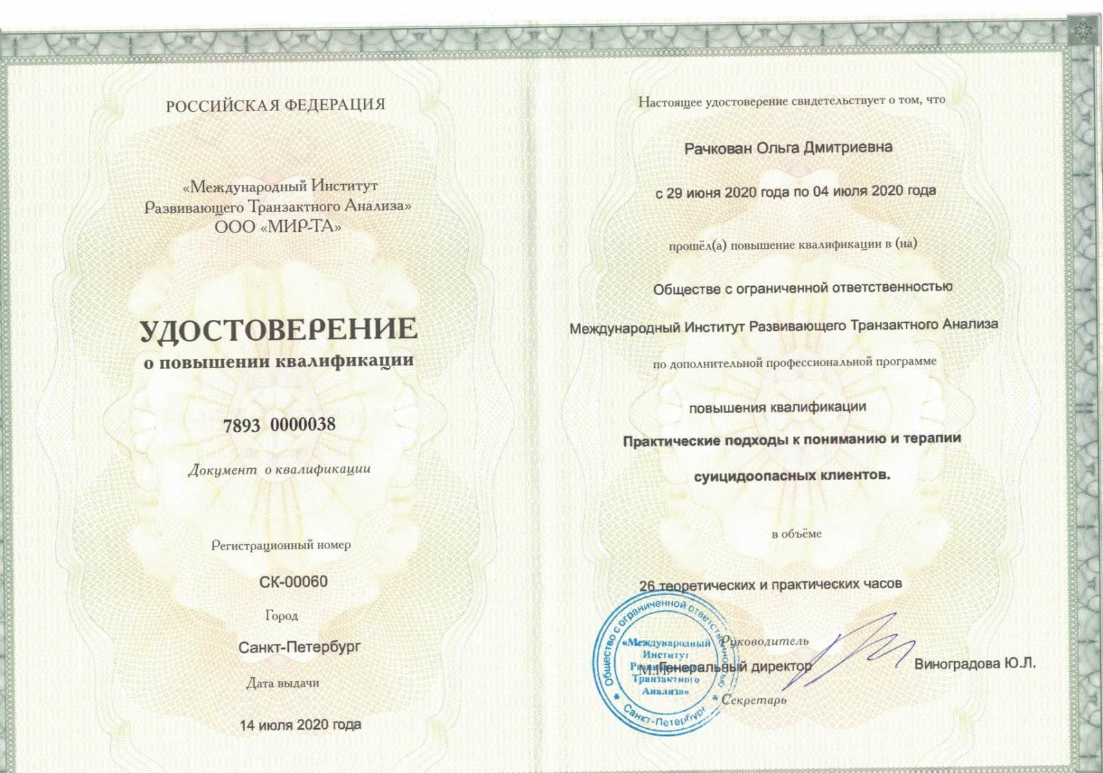 Программа подготовки психологов-консультантов «Практические подходы к пониманию и терапии суицидоопасных клиентов»