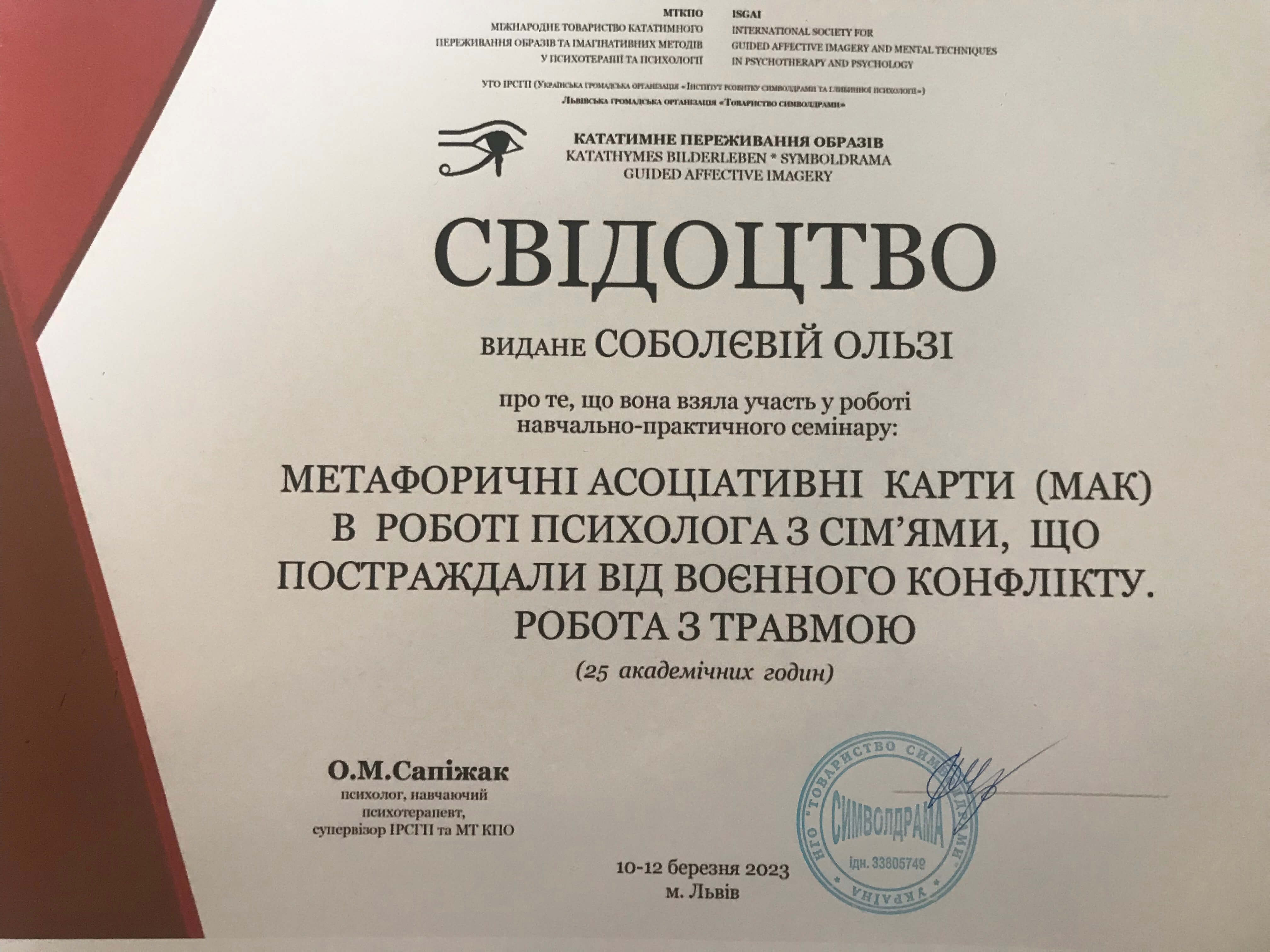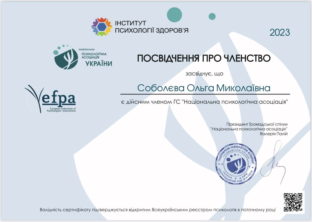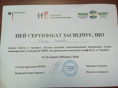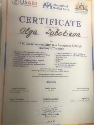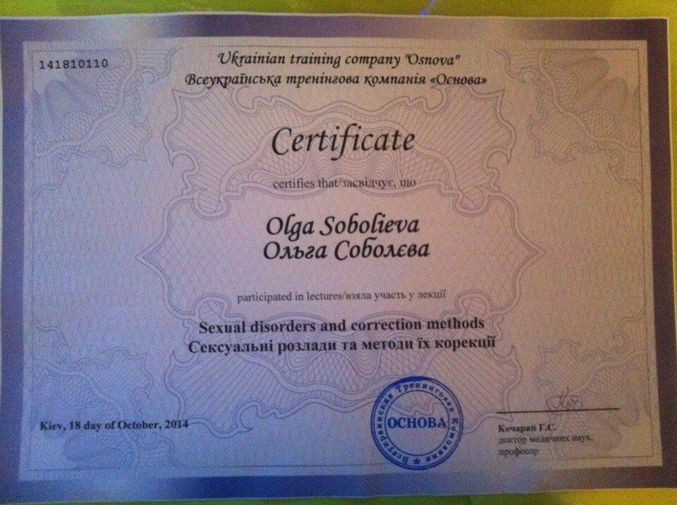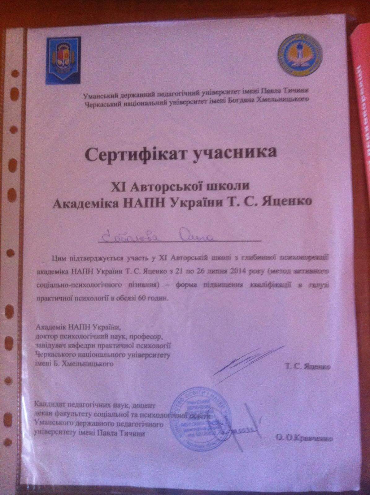 2012, 2013, 2014, 2015, 2016, 2017, 2018, 2020, 2021 сертификаты научных сессий по глубинной психокоррекции авторской школы академика Национальной академии наук Украины Т.С. Яценко
