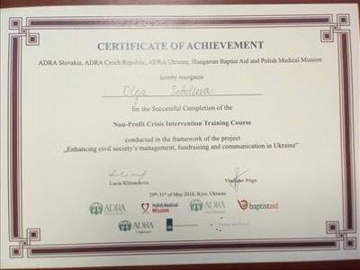 Магистр психологии (УМО), психолог в методе АСПП - глубинной психокоррекции, психолог семейной психопрофилактики (Польша), специалист биосуггестивной терапии(Киев), курсы Арттерапии, в т.ч. работа с МАК, тренер по первой психологической помощи, тренер по семейному консультированию, обучаюсь системной супервизии и КПТ.
