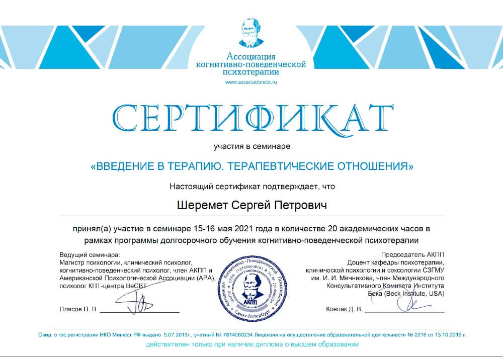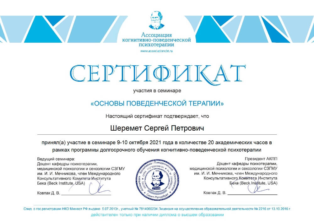 Когнитивно-поведенческий терапевт, супервизор, структурированный подход, научно-обоснованные методы, ясность и конкретность, чёткие шаги достижения глубокой внутренней свободы, спокойствия и внутреннего благополучия.