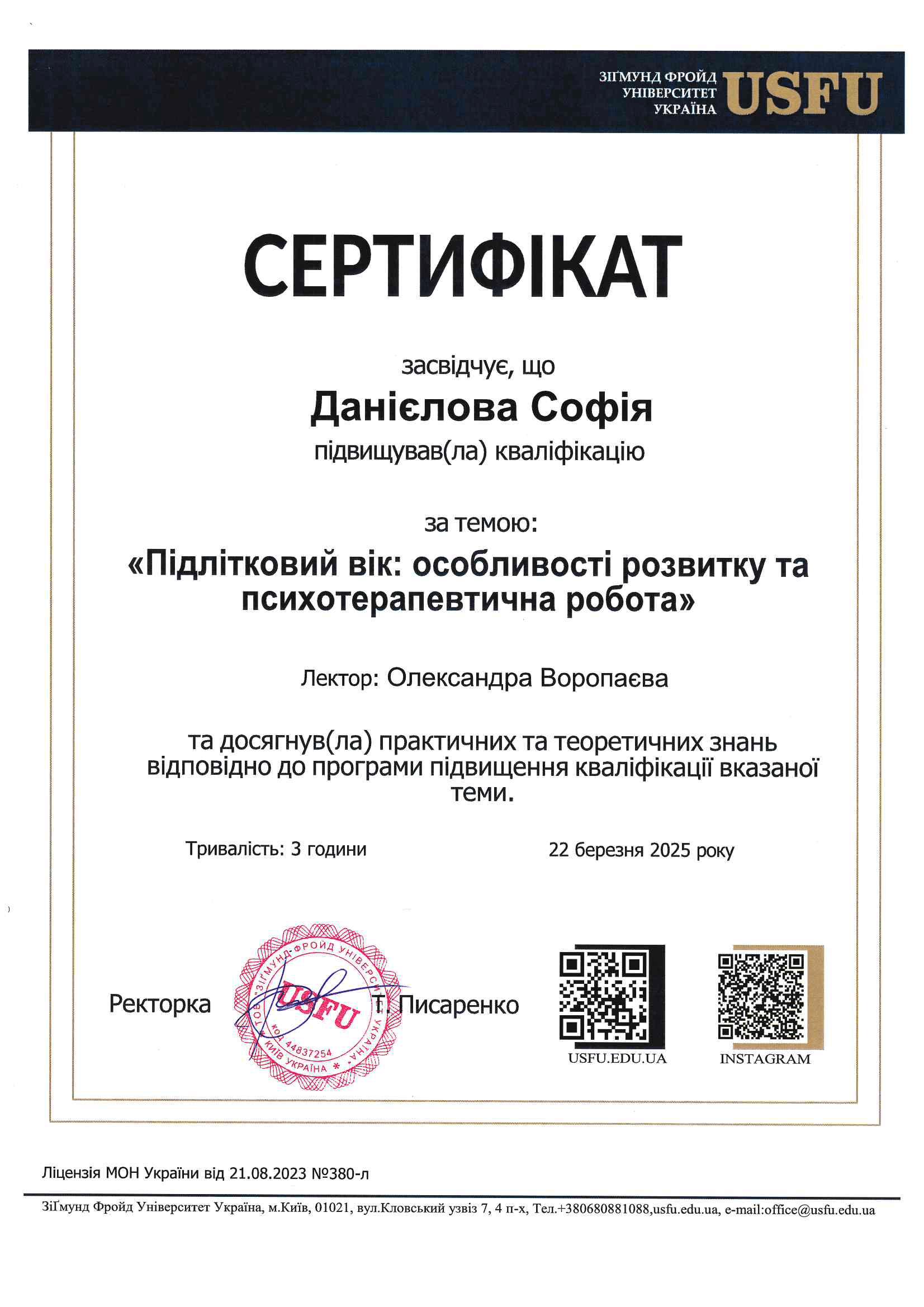 Сертификаты:
