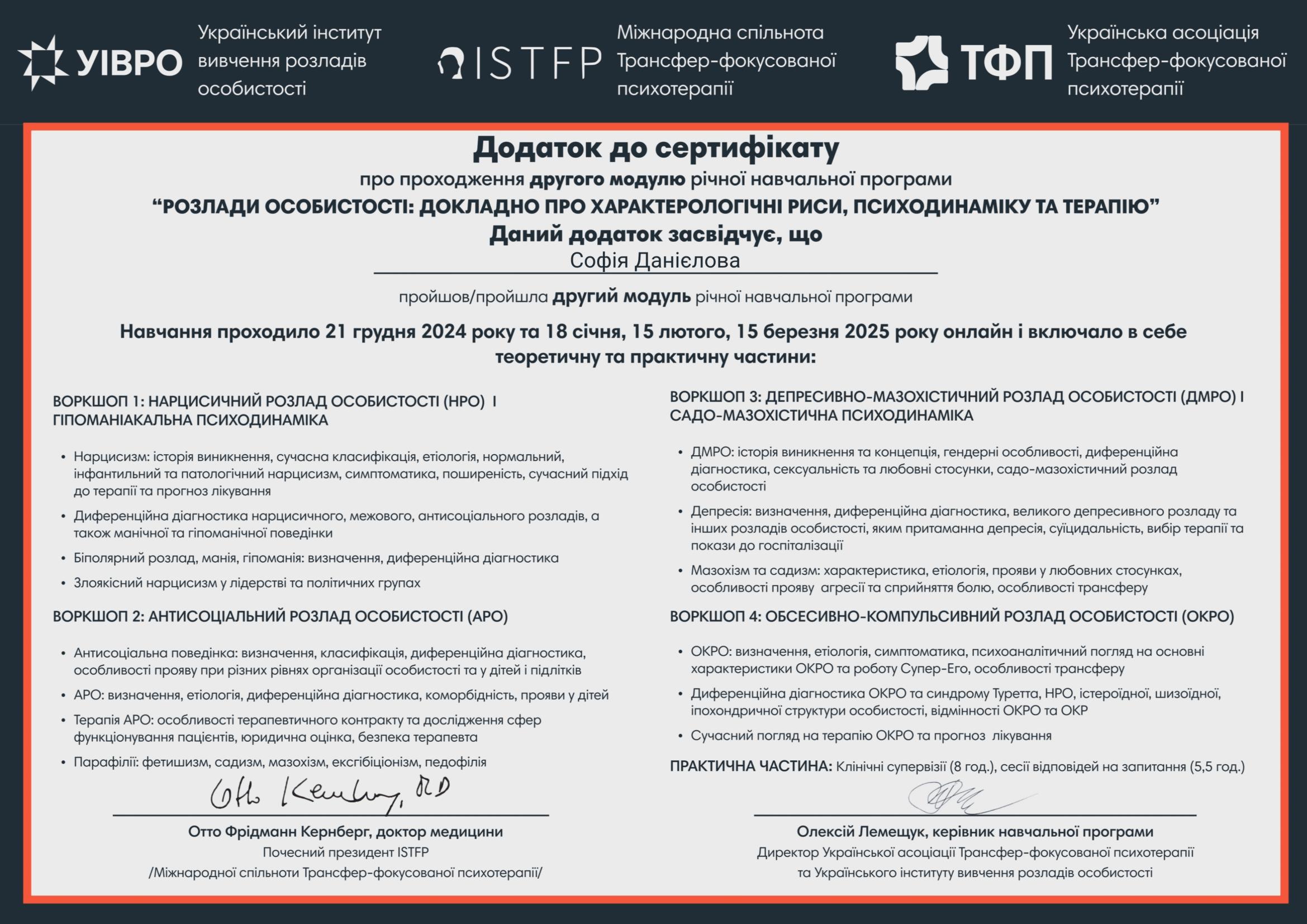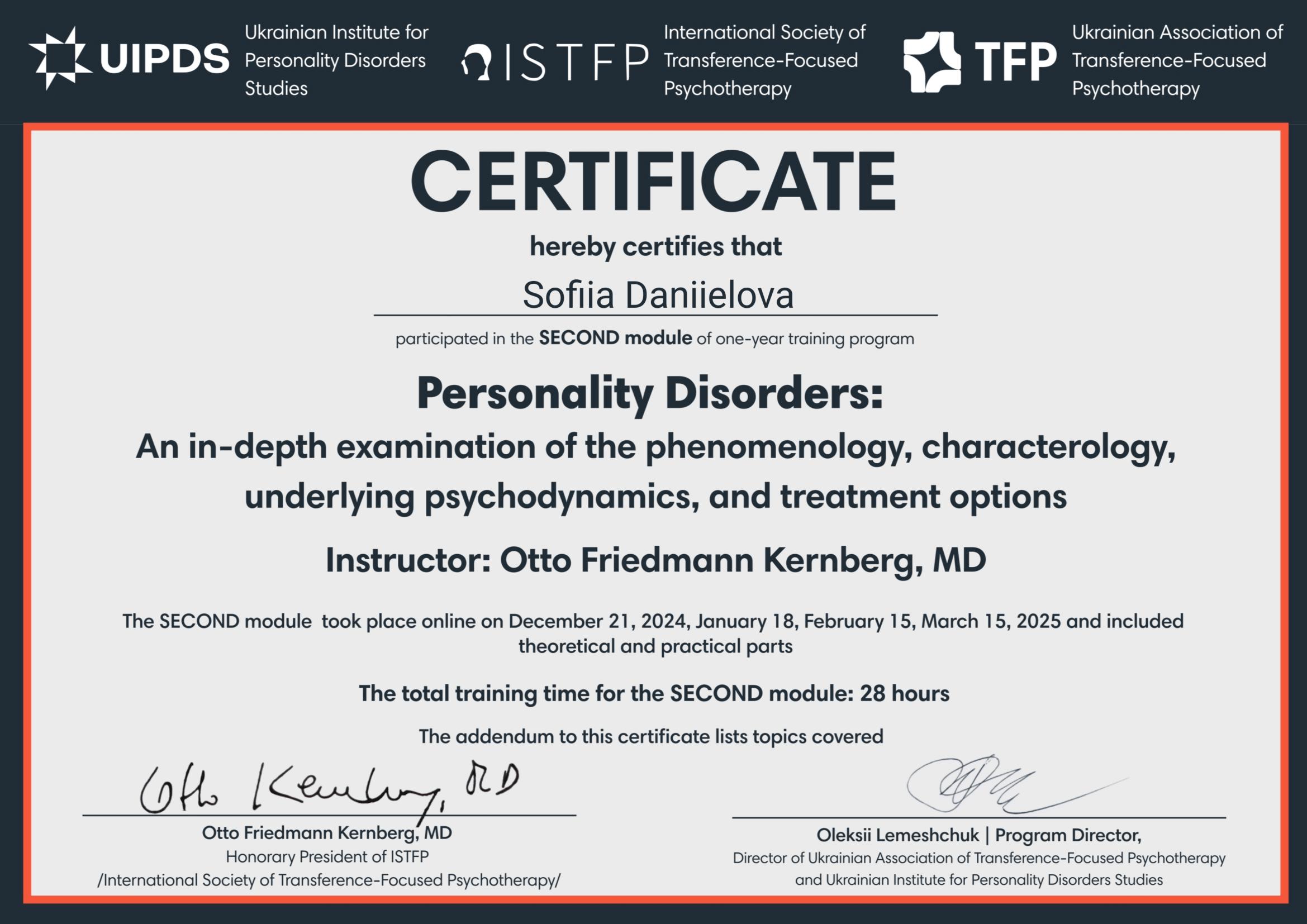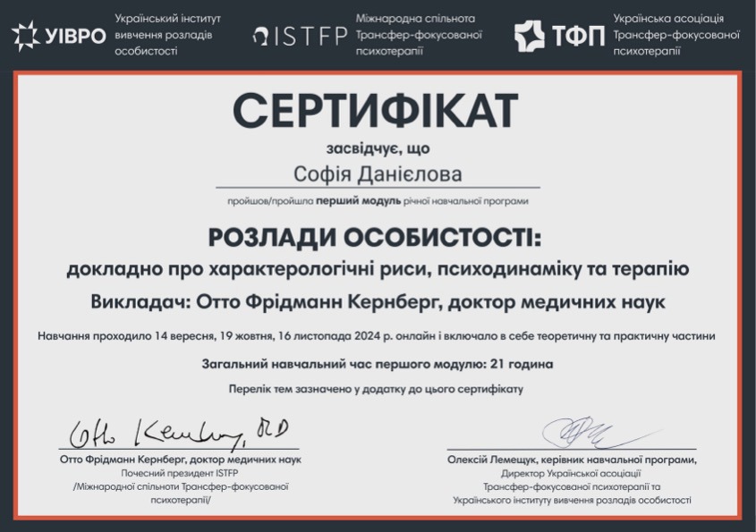 Годовая программа Отто Кернберга по расстройствам личности – 2024-2025