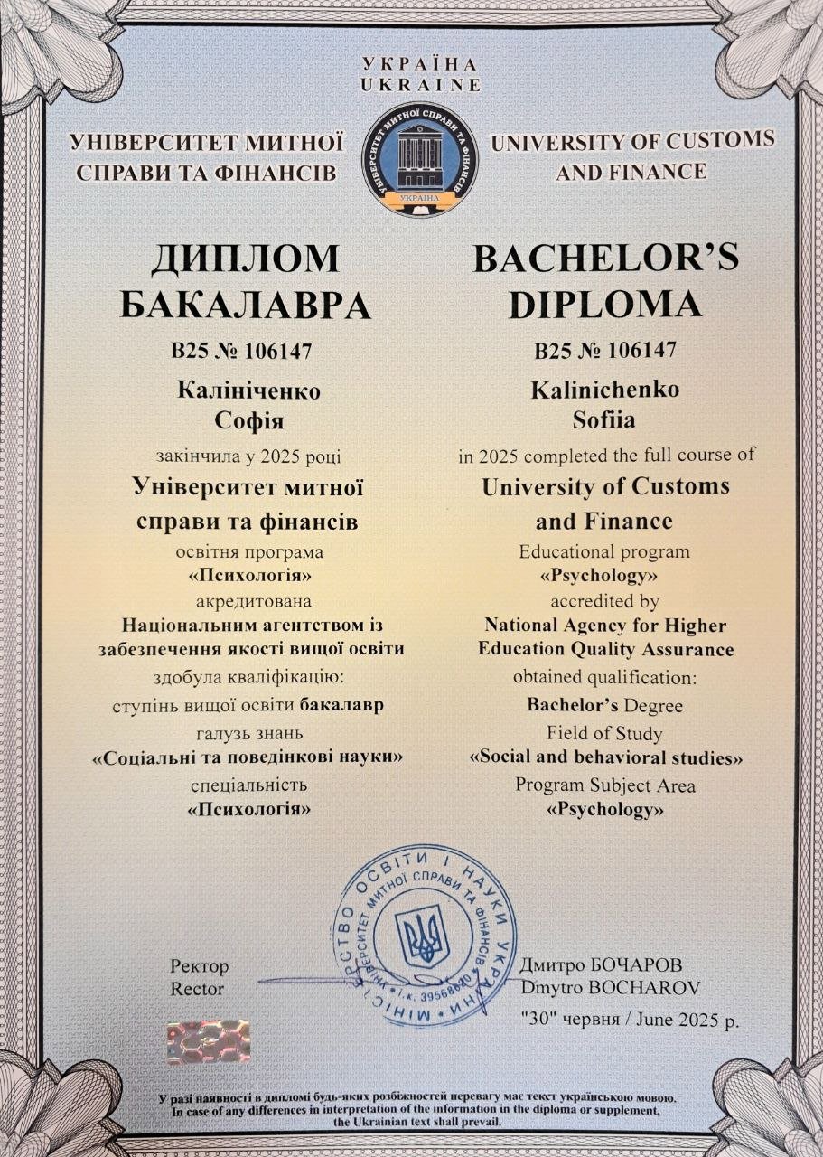 УМСФ - высшее образование, по специальности "психология".