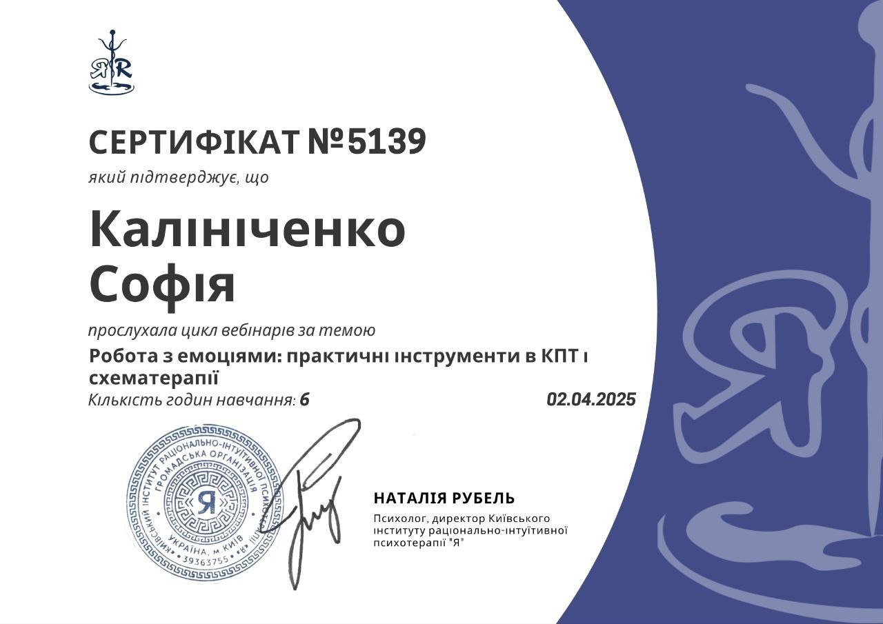 Киевский институт рационально-интуитивной психотерапии «Я», цикл вебинаров «Работа с
