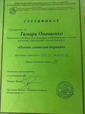 Член Всеукраинской организации психологов, практикующих гештальт-подход