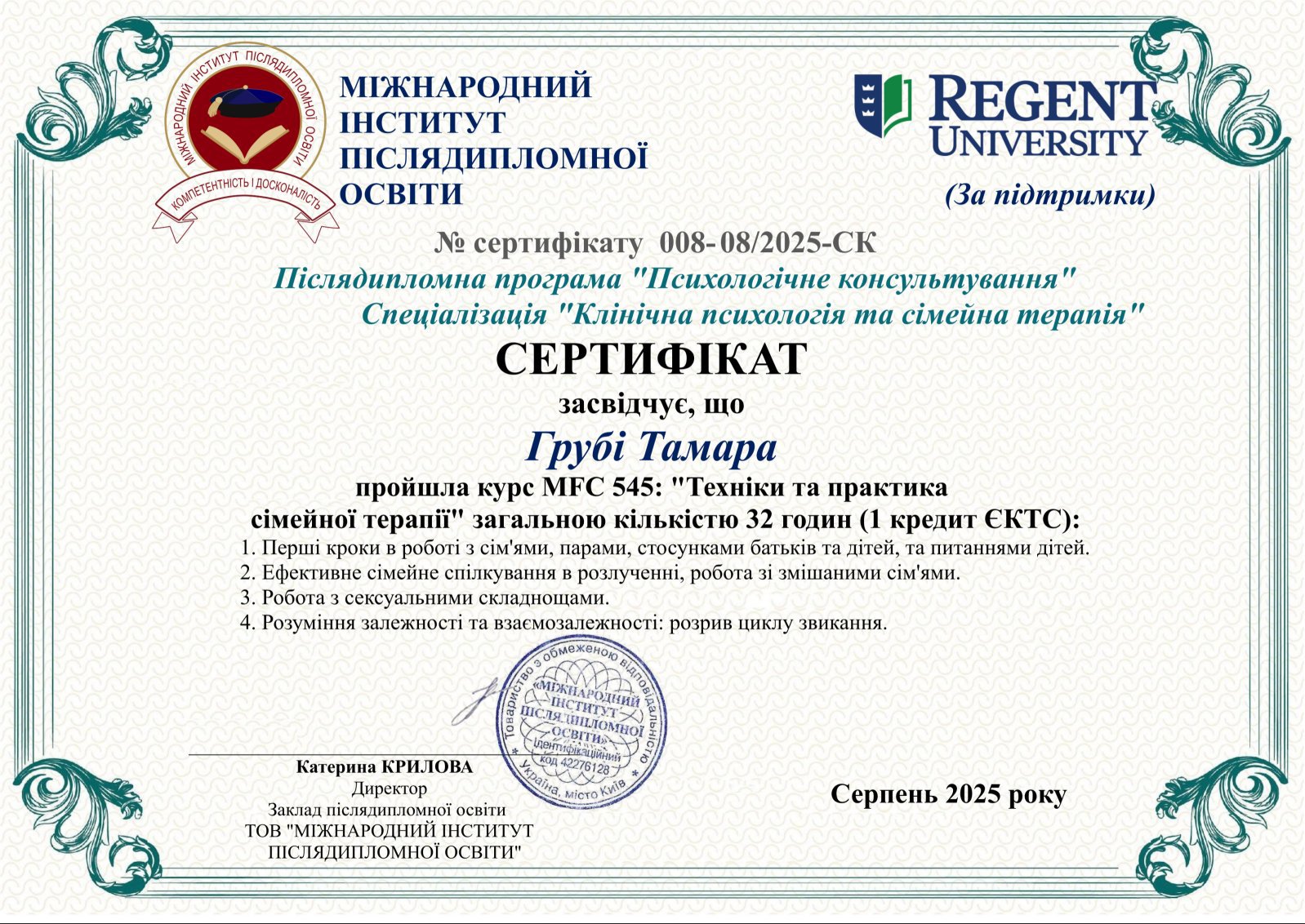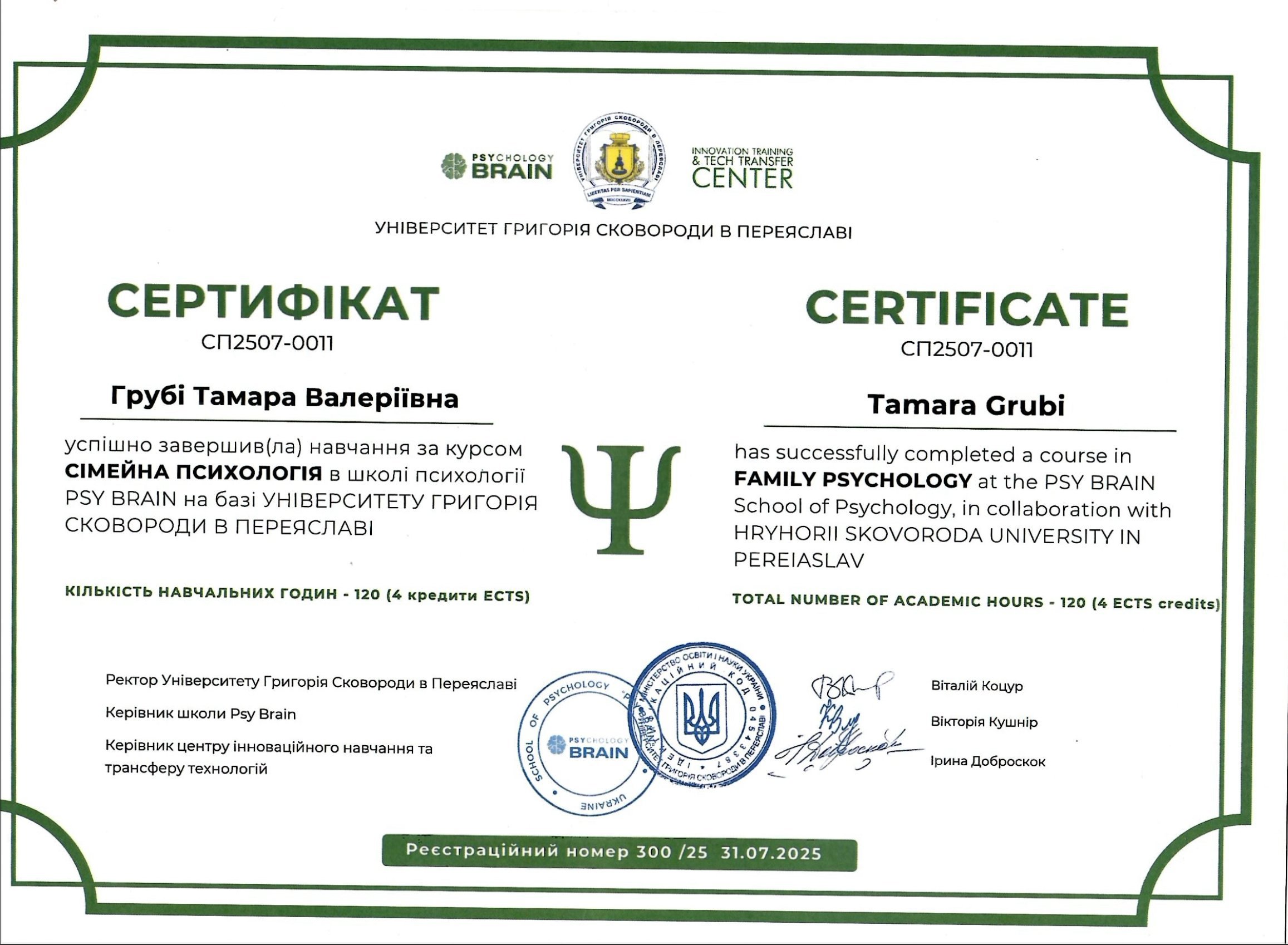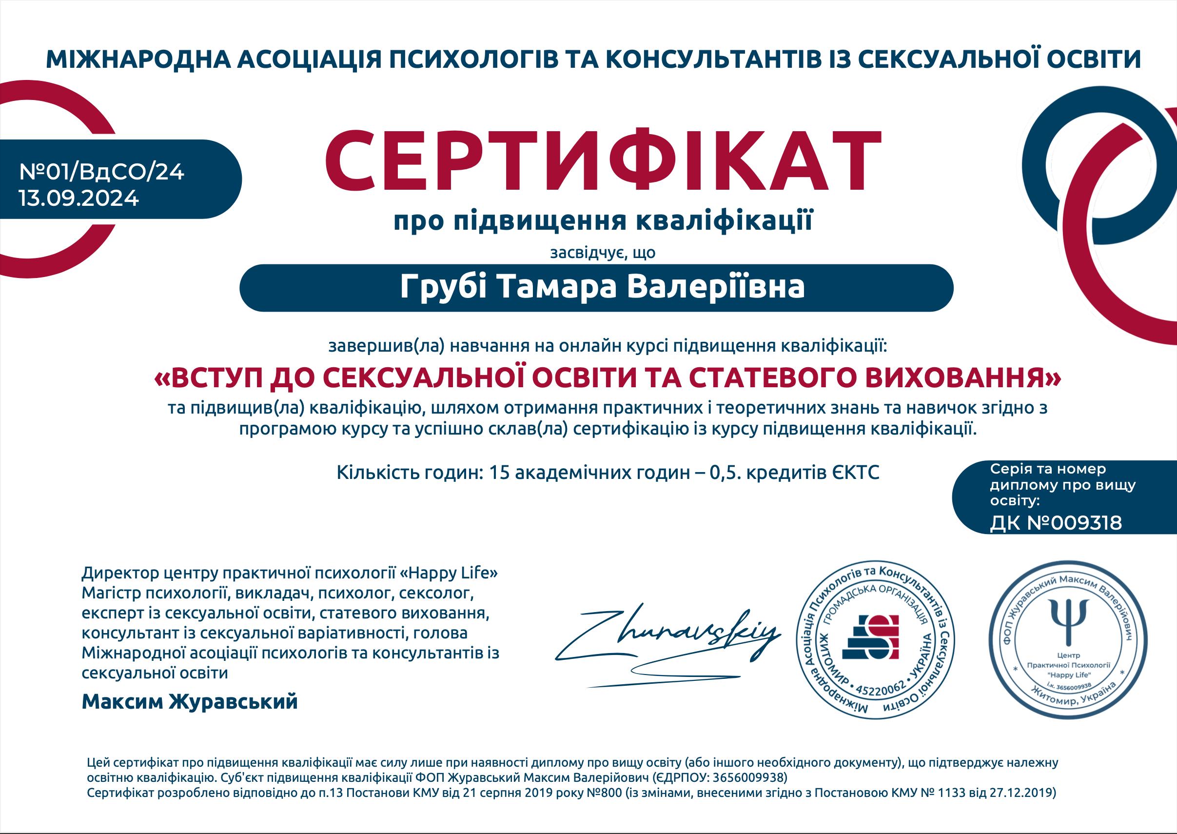 2024-теп.ч – Переяслав-Хмельницкий университет. Квалификация: Сексолог (120 академ. часов)