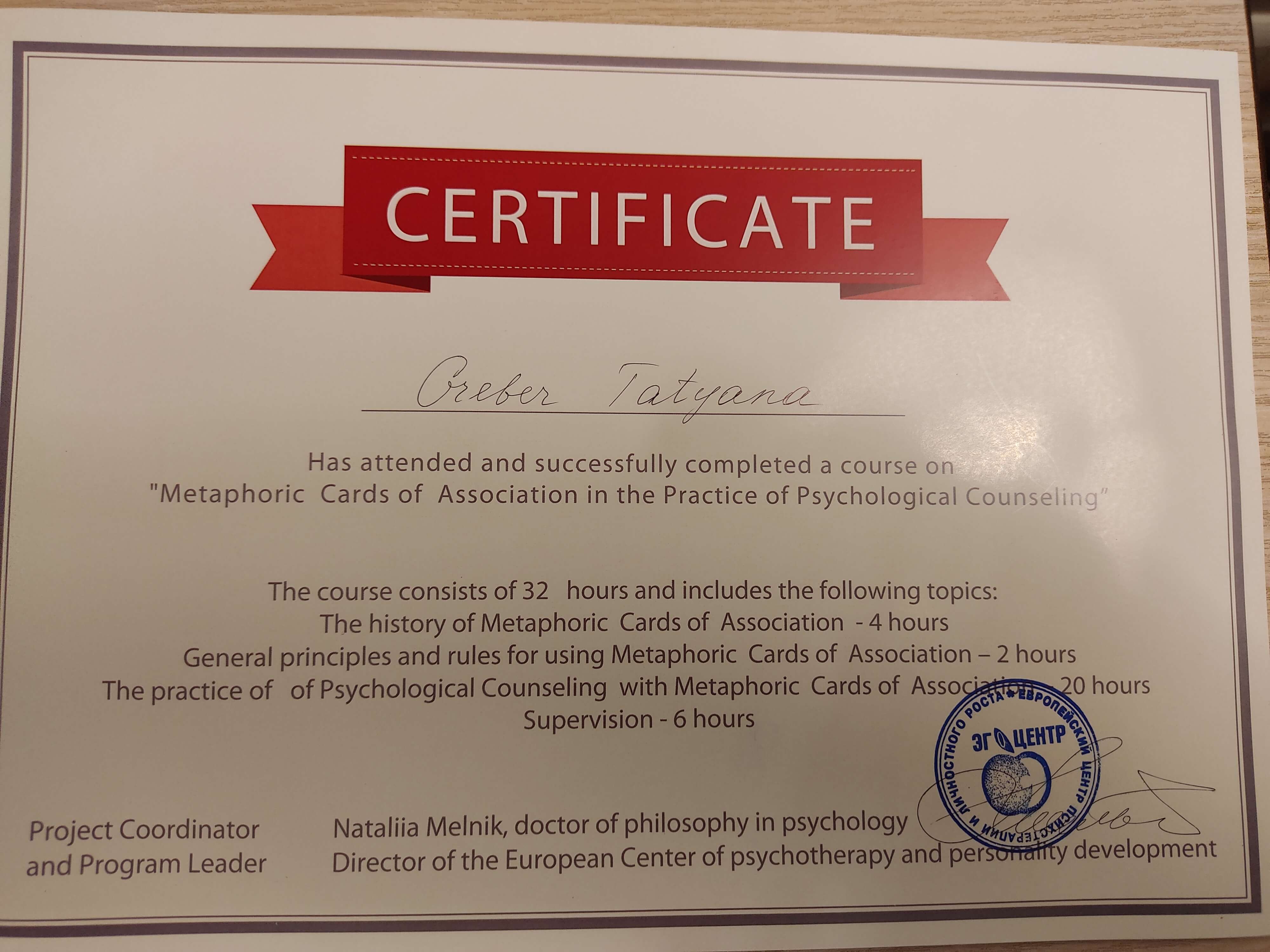 " Метафорические ассоциативные карты в психотерапевтической практике", " Структурная психодиагностика"