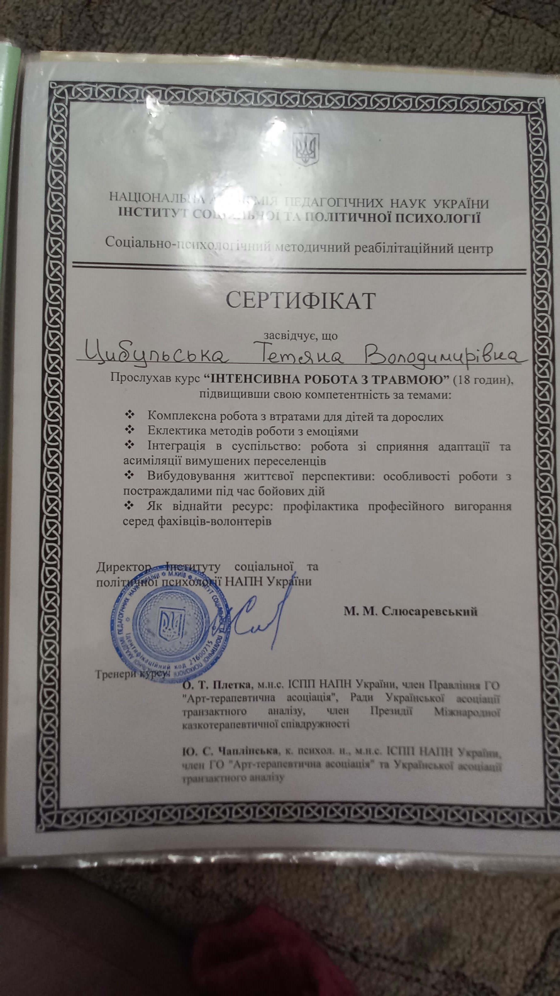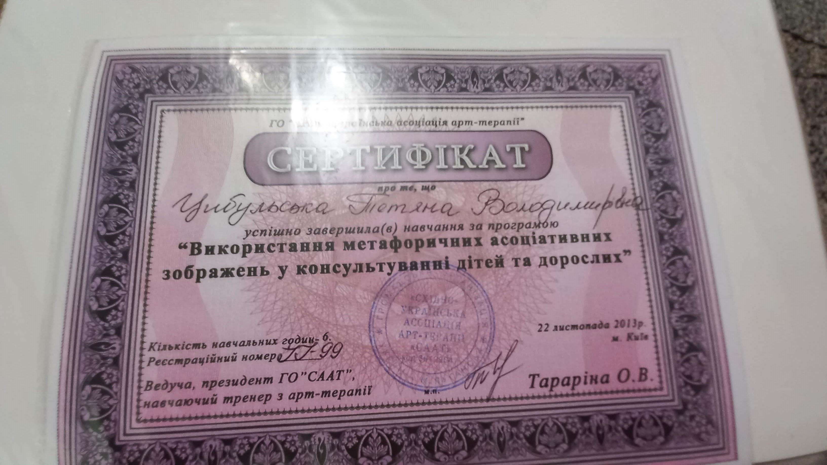 В профессии уже 15 лет. За этот период прошла не одно обучение. Основные направления в которых я работаю: арт-терапия, сказкотерапия, песочная терапия, Мак, психосоматика. На данный момент прохожу обучение психотерапии в Транзактном анализе.