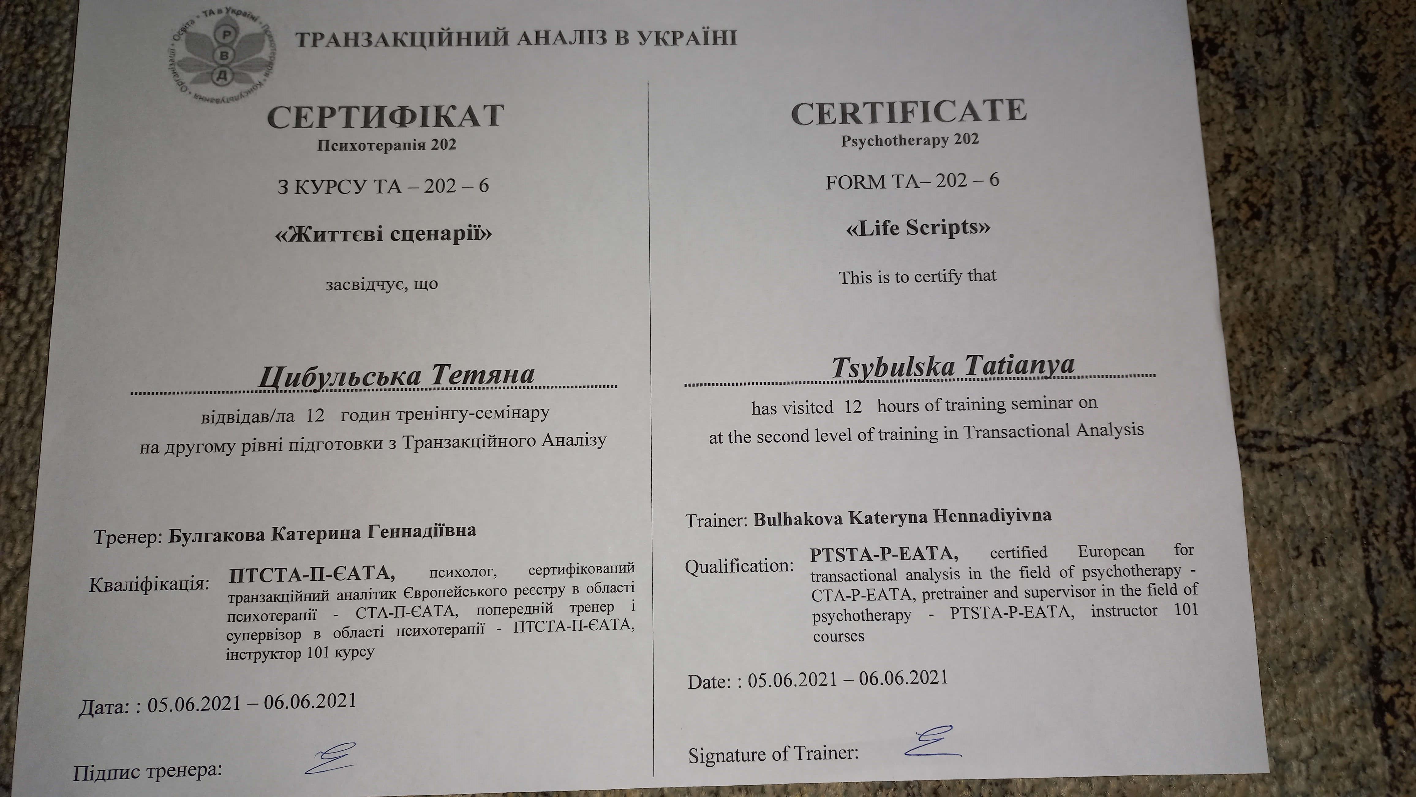 Сертификаты: