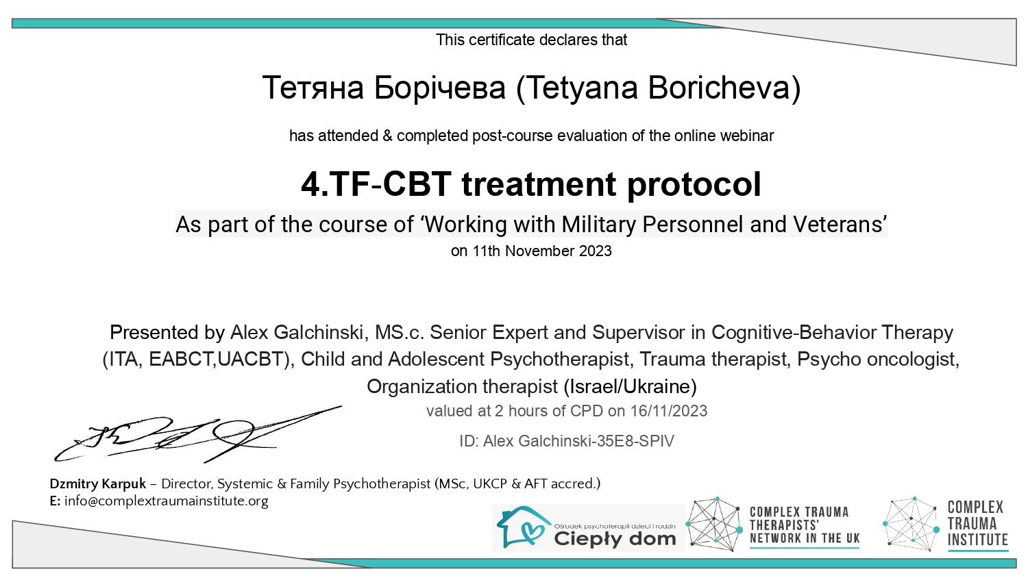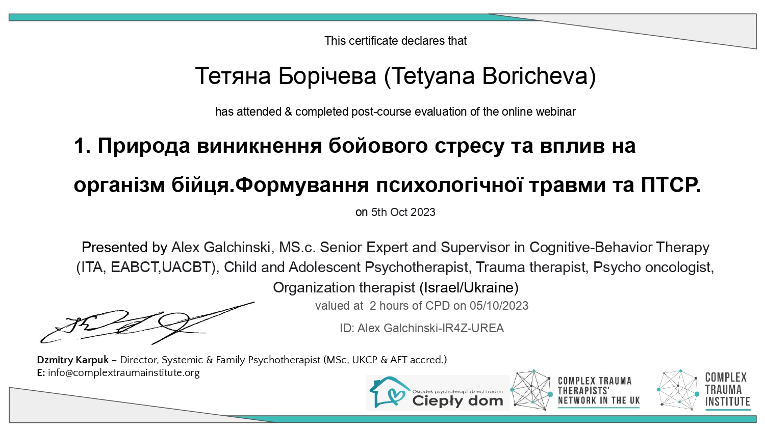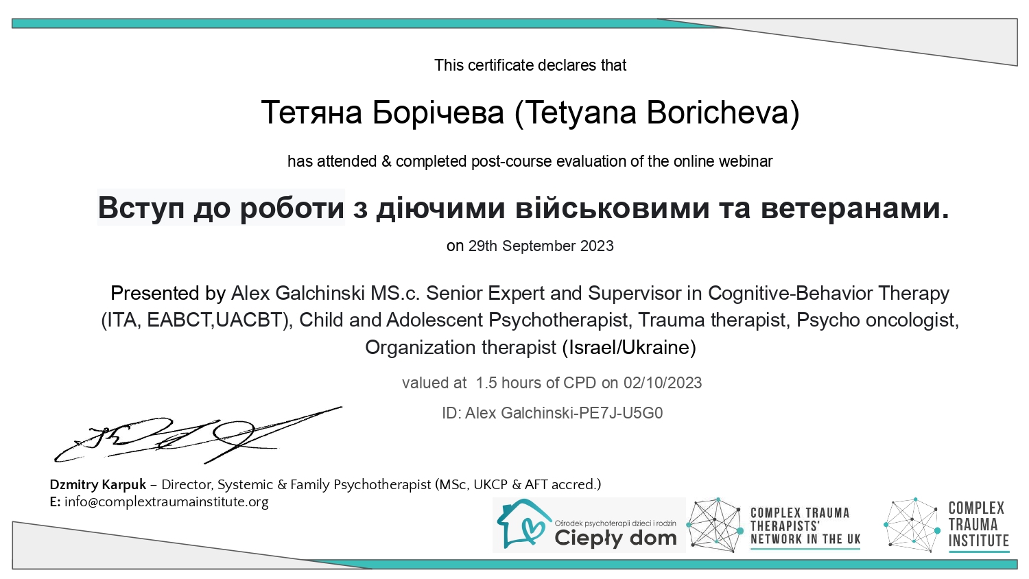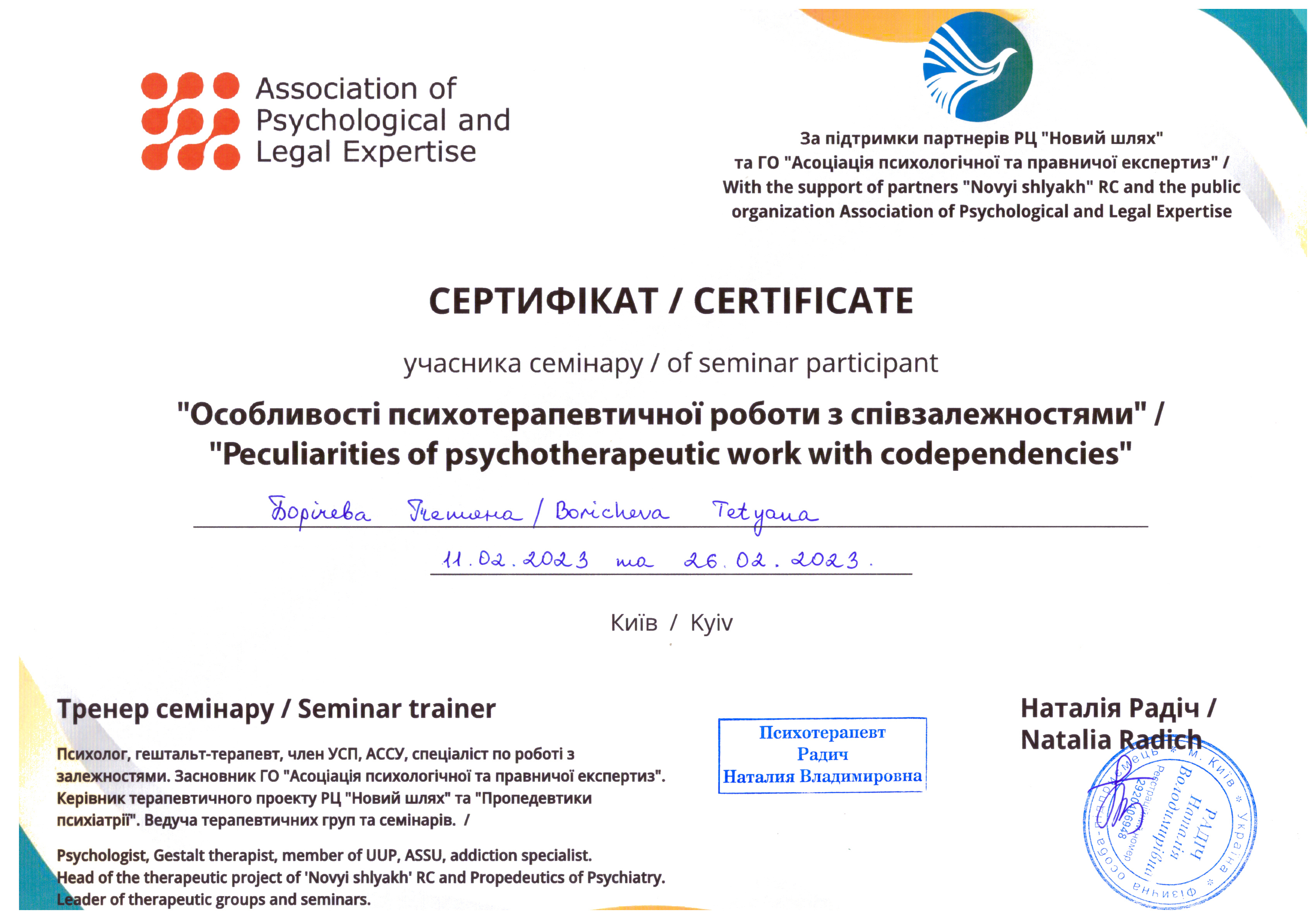 – ДЗ Южноукраинский Национальный Педагогический Университет им. К.Д.Ушинского Повышение квалификации: «Психологическая помощь военнослужащим и их