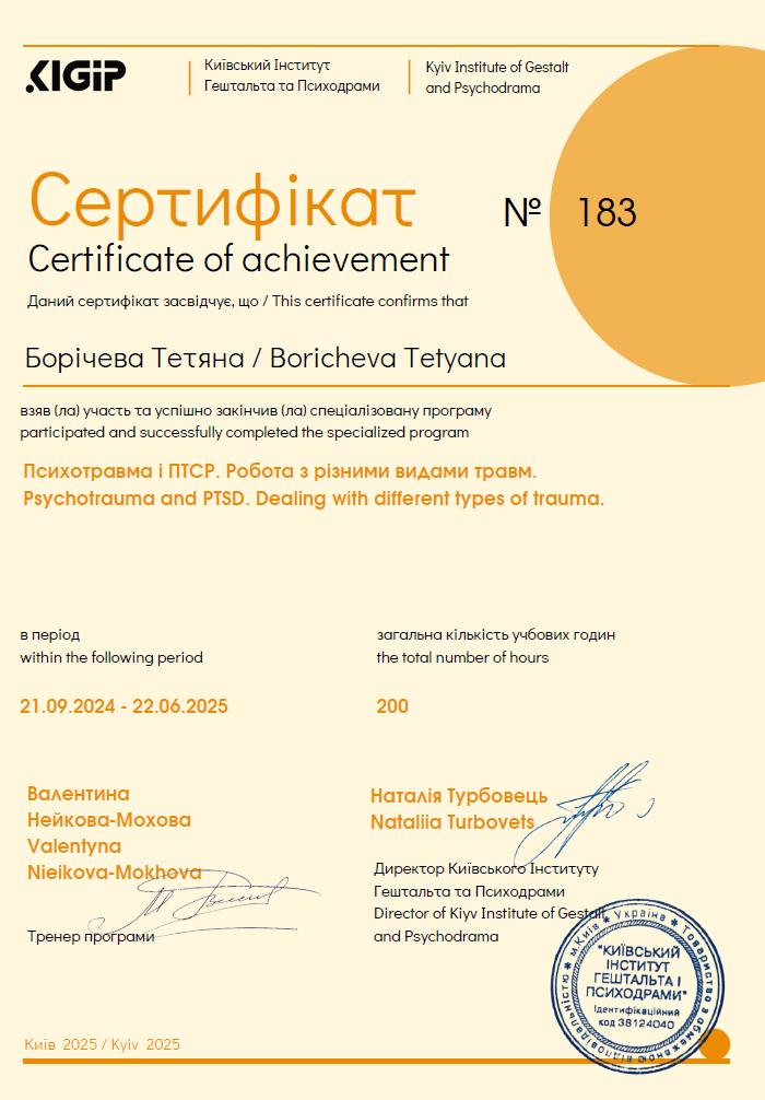 Специализация: «Гештальт-терапия в работе с травматическим опытом клиента»