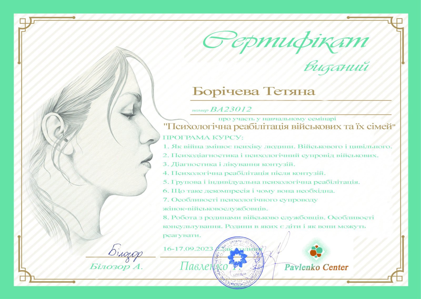 Курс по А.Билозору: «Психологическая реабилитация военных и их семей»