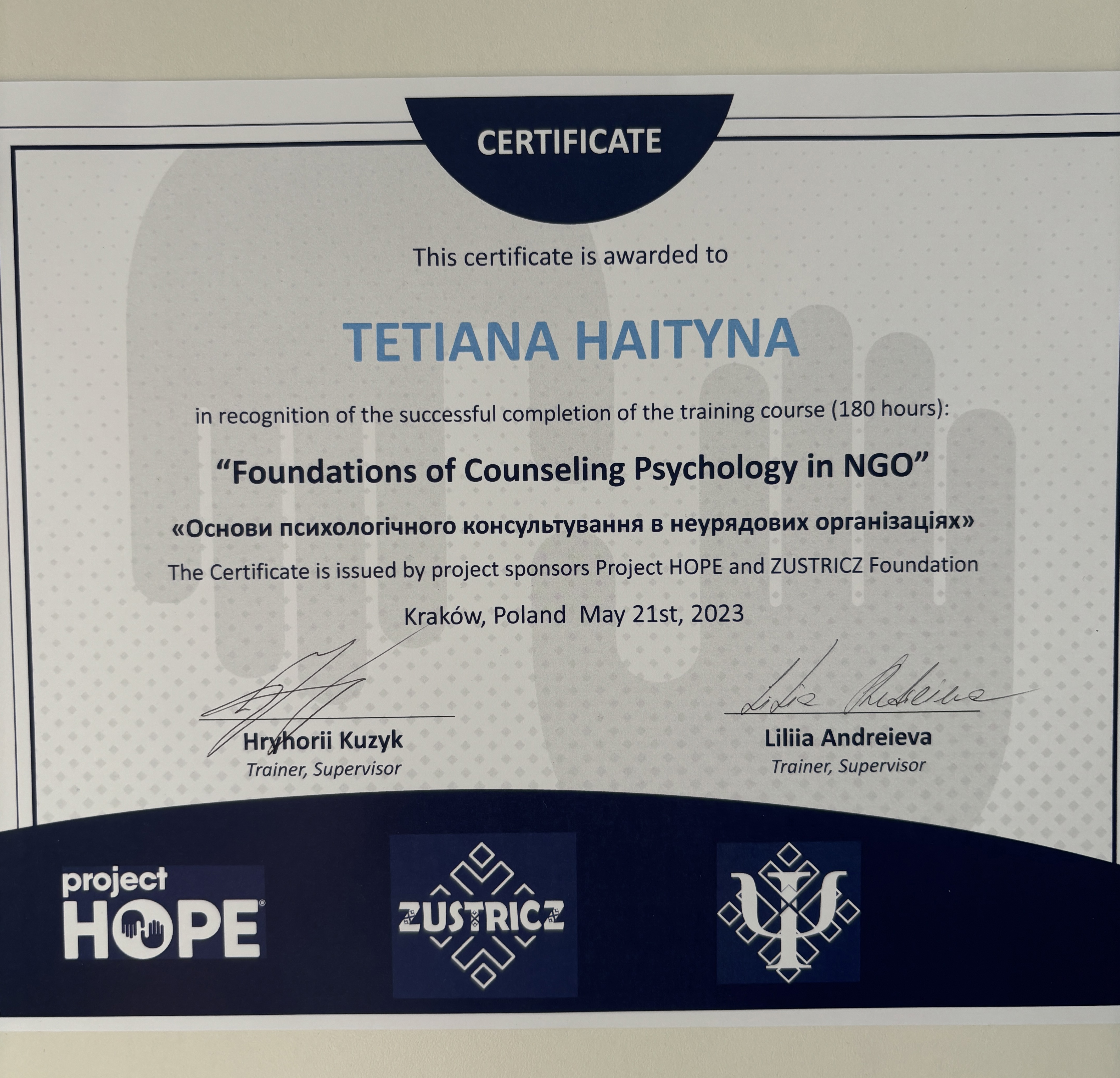 Сейчас, с января 2025 года получаю последипломное образование, будущая специализация: клинический психолог, травмотерапевт