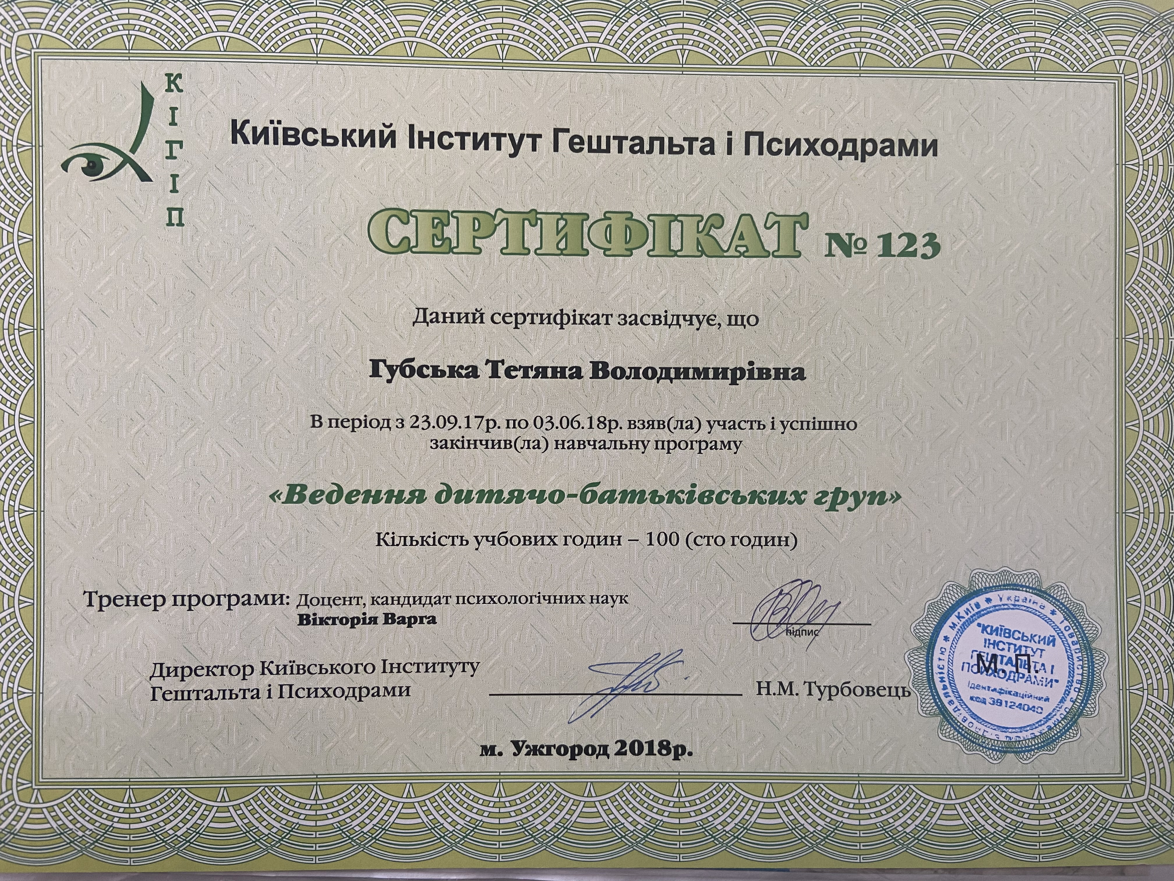 Прошла две ступени обучения, что позволило мне углубить понимание гештальт-подхода и психодрамы.