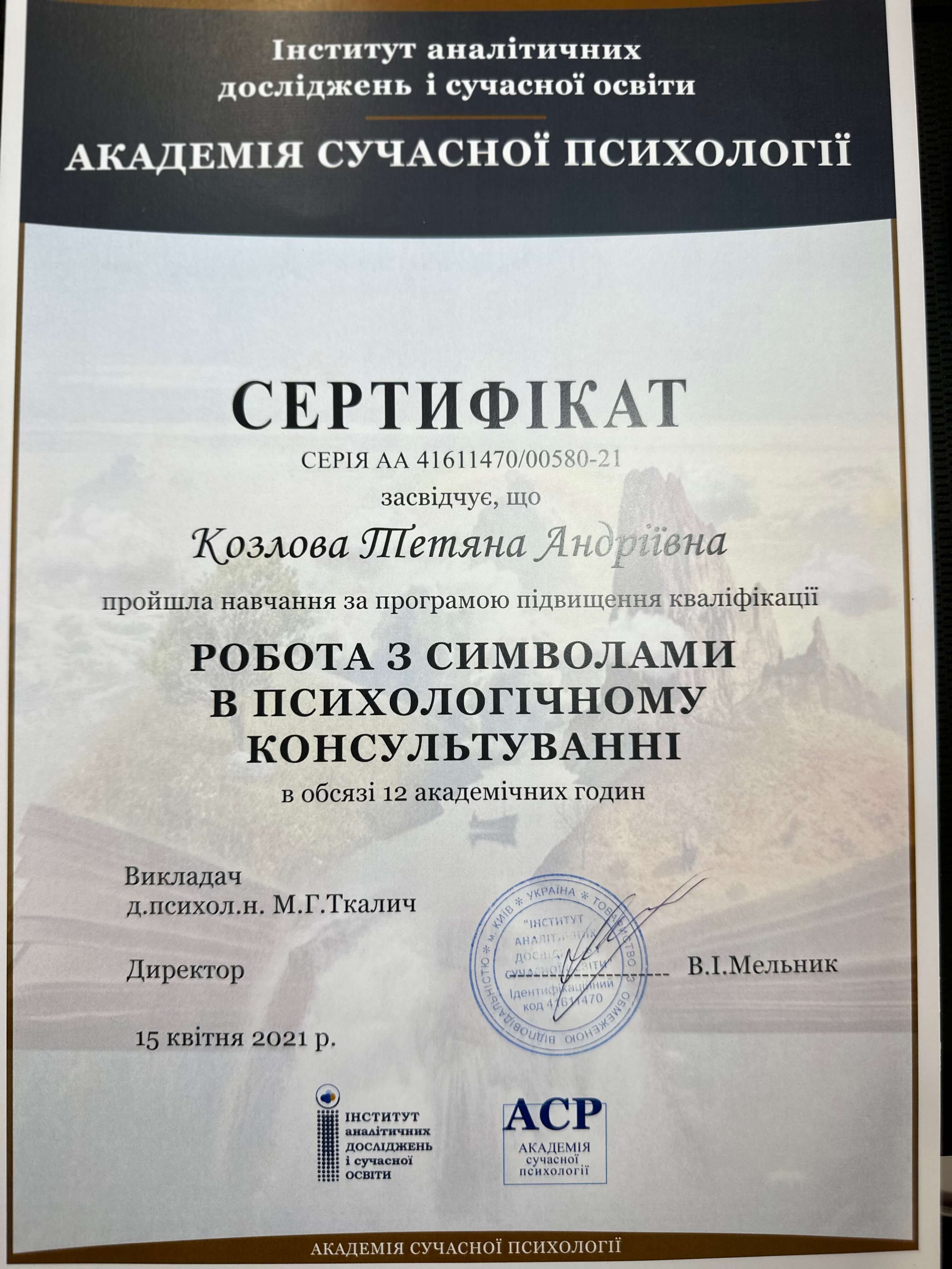 – Академия современной психологии – «Работа с символами в психологическом консультировании»
