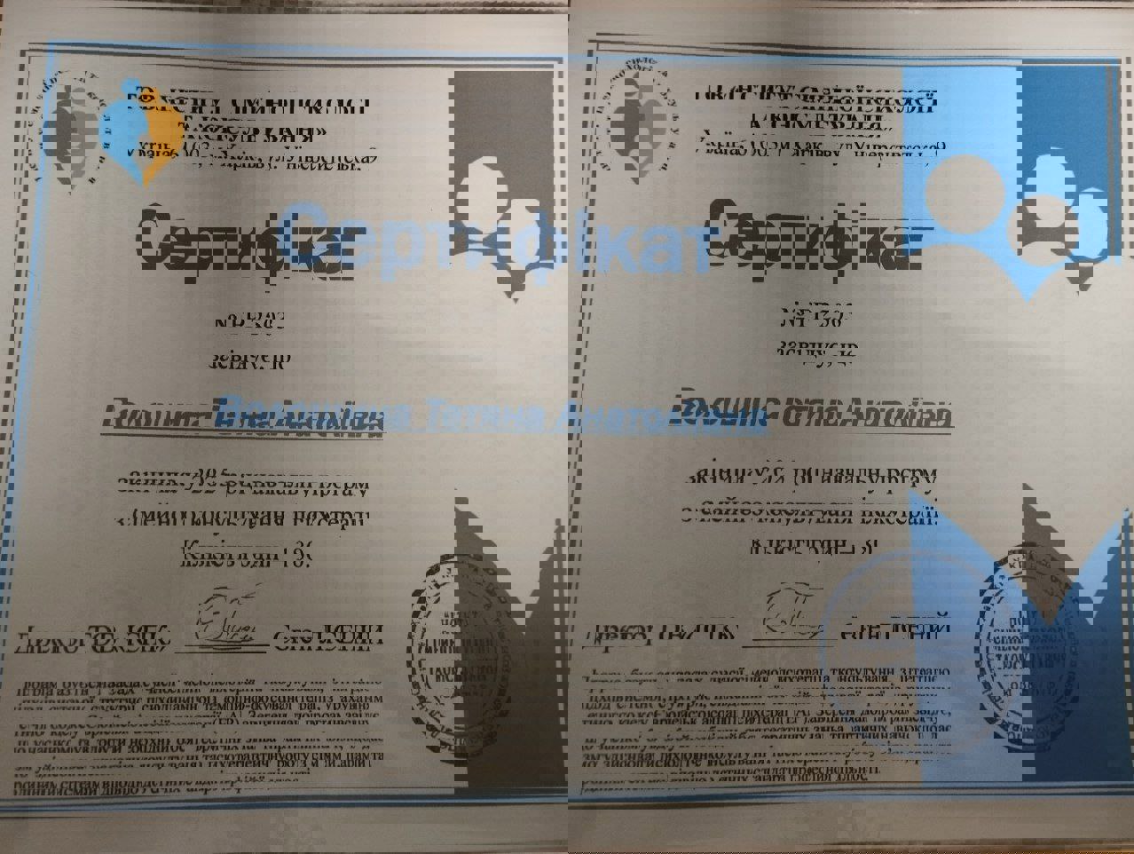 Сертификаты: