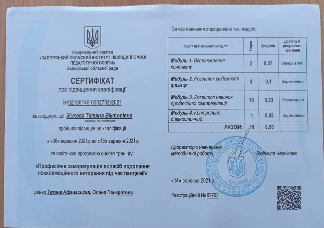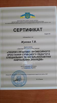 Министерство Образования и Науки КЗ " Запорожский институт последипломного педагогического образования" ЗОР, свидетельство о повышении квалификации,108 ч.