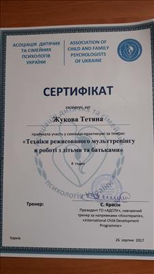 Практический психолог, арт-терапевт, специалист по работе с детьми с особенными потребностями, специалист по работе с метафорическими ассоциативными картами, автор МАК, спикер международных конференций, член ассоциации детских и семейных психологов Украины