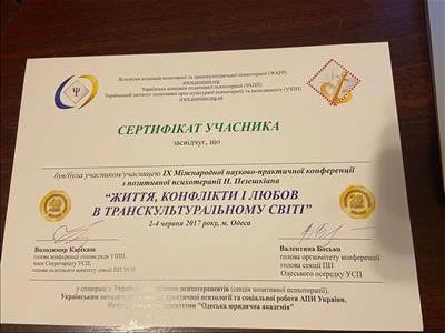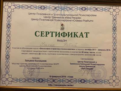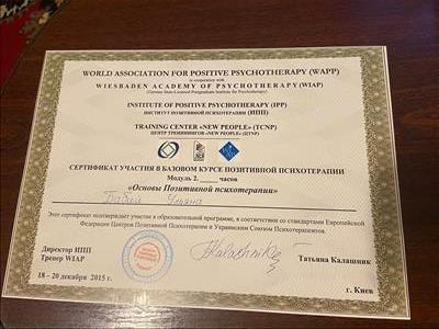 Психотерапевт в методе позитивной транс-культурной психотерапии (Всемирная ассоциация WAPP, Германия)